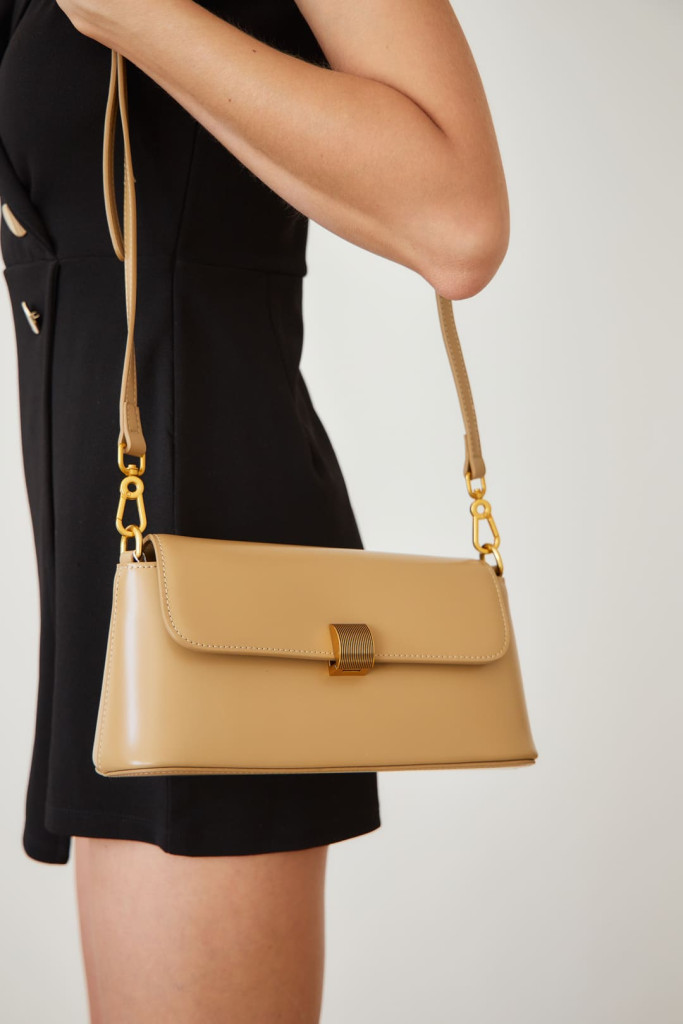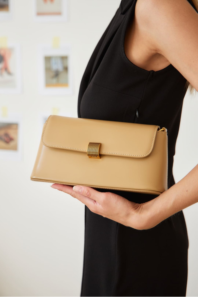 Сумка 1983A изготовлена из высококачественной натуральной кожи бежевого цвета. Два плечевых ремня различной длины, металлическая фурнитура цвета золота, подкладка из текстиля - все эти детали придают сумке особый шарм и функциональность. Плечевой ремень делает сумку удобной в повседневном использовании. Эта сумка действительно может стать отличным дополнением к различным нарядам.