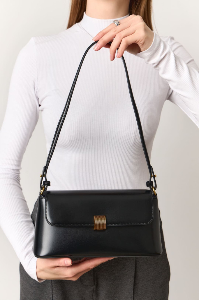 Сумка 1983Р изготовлена из высококачественной натуральной кожи черного цвета. Два плечевых ремня различной длины, металлическая фурнитура цвета золота, подкладка из текстиля - все эти детали придают сумке особый шарм и функциональность. Плечевой ремень делает сумку удобной в повседневном использовании. Эта сумка действительно может стать отличным дополнением к различным нарядам.