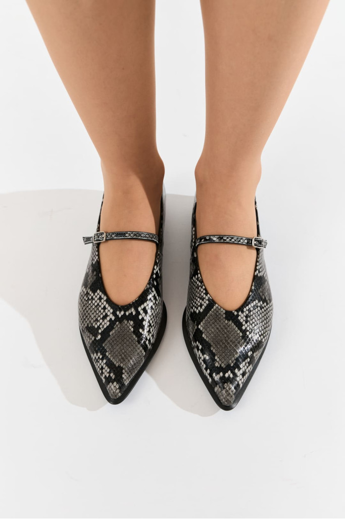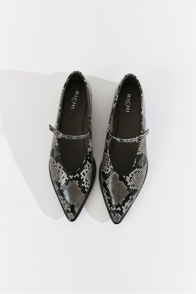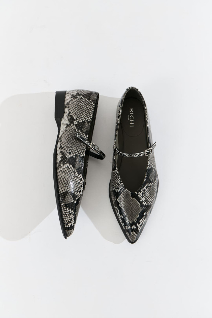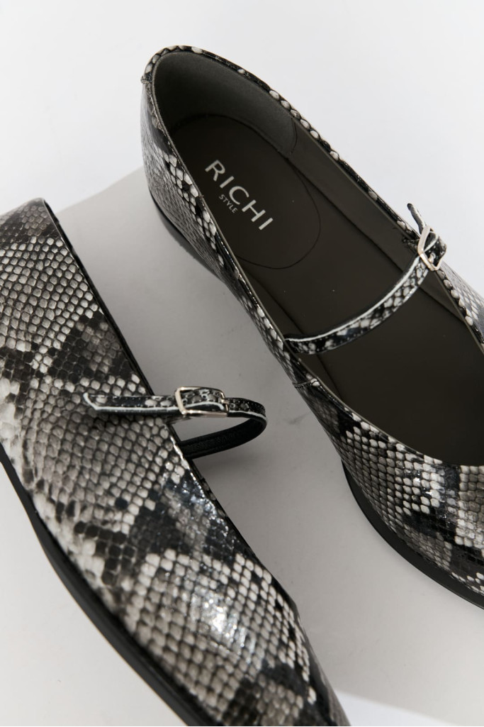 Изготовленные из высококачественной натуральной кожи цвета мультиколор с фактурой под-рептилию, эти балетки обещают долговечность и удобство.