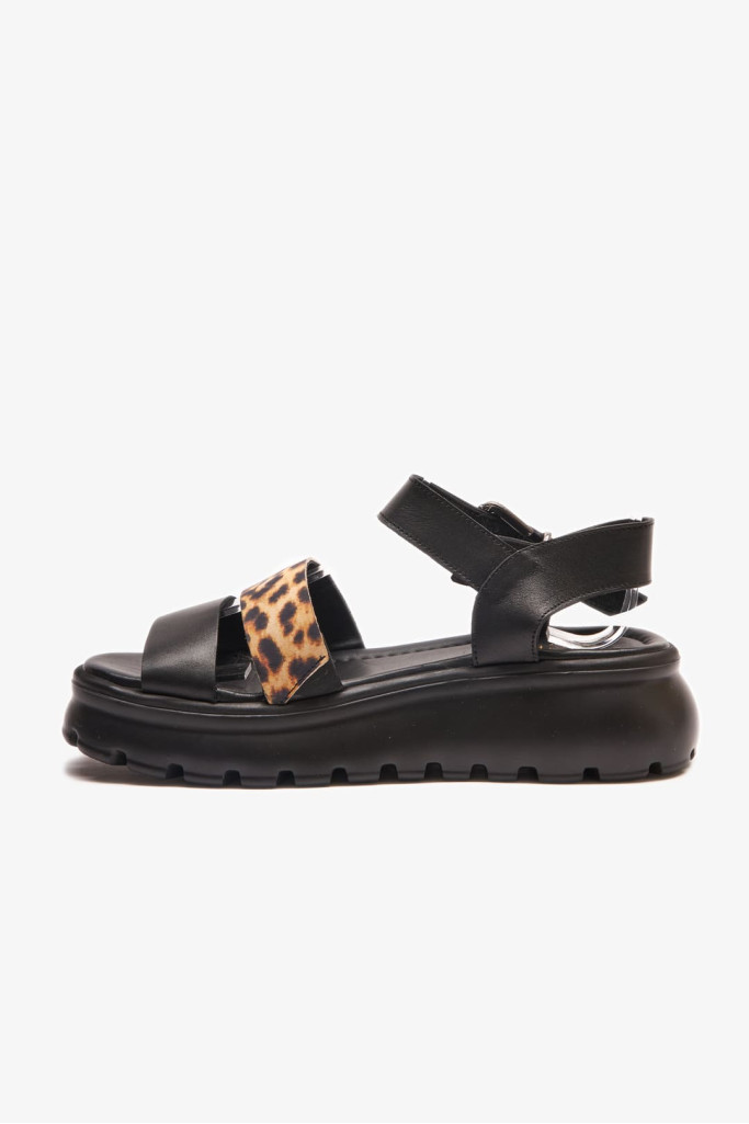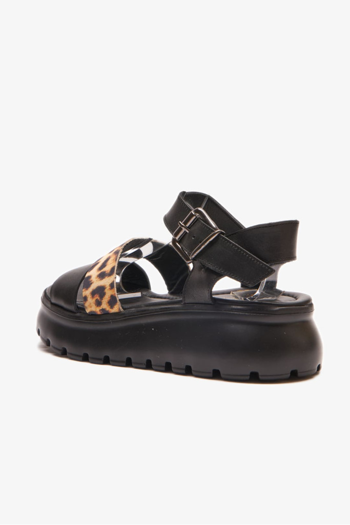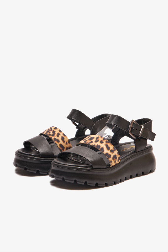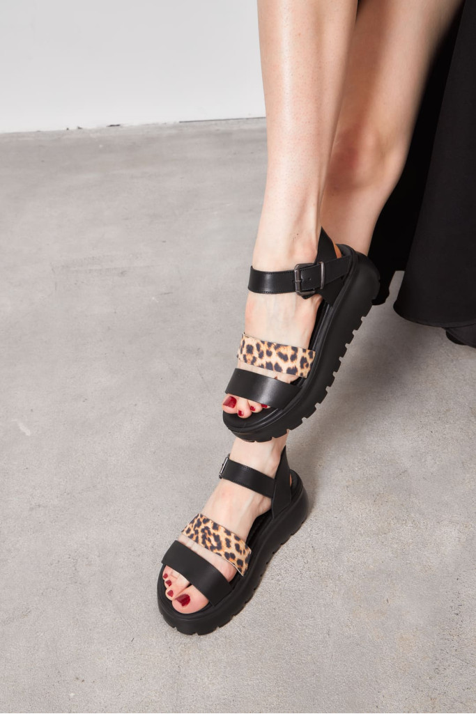 Босоножки 1792 покоряют изящным стилем и утонченностью. Эта обувь действительно впечатляет своим стилем и качеством. Натуральная кожа в черном цвете с анималистическим принтом  придает этой паре особый шарм и делает ее универсальной для различных образов.
