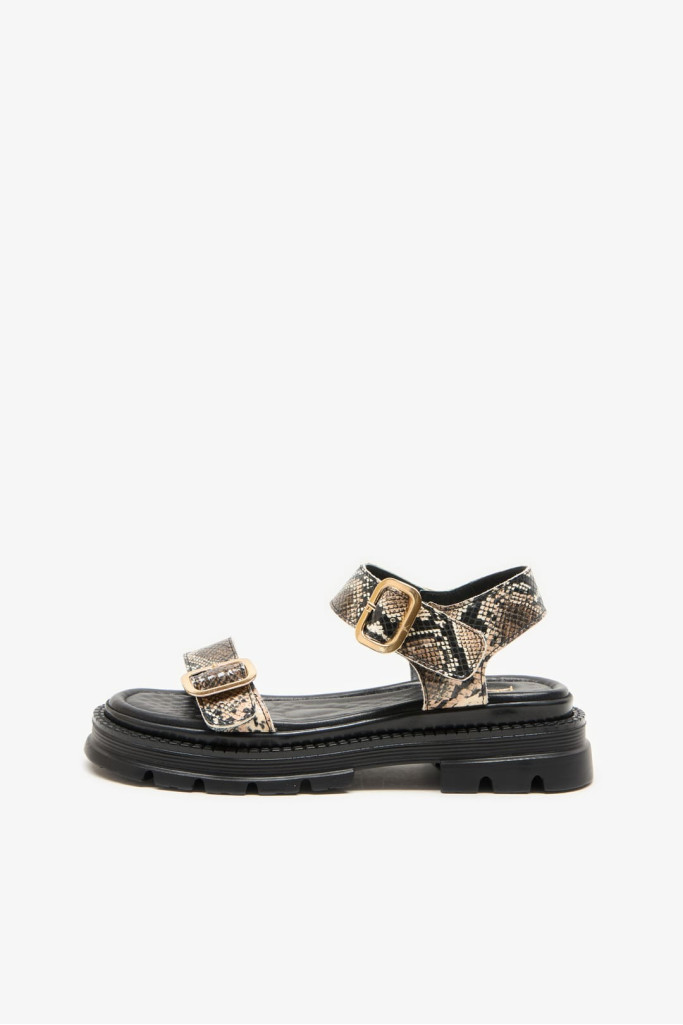 Босоножки 1801A4 покоряют изящным стилем и утонченностью. Эта обувь действительно впечатляет своим стилем и качеством. Натуральная кожа с фактурой под рептилию в цвете мультиколор придает этой паре особый шарм и делает ее универсальной для различных образов.