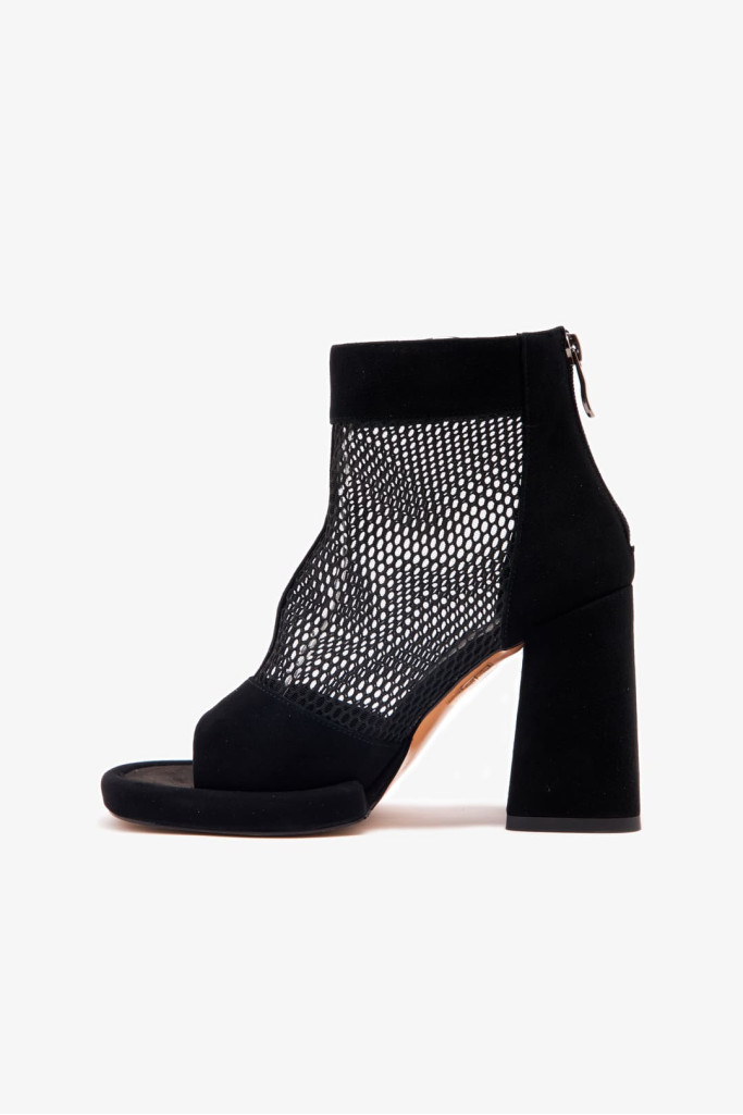 Босоножки 1613 из натуральной замши+сетка из текстиля черного цвета - это изысканный и стильный выбор для любой женщины. Их устойчивый каблук, удобная застежка на молнию в пяточной части делают их не только модными, но и практичными для повседневного использования.