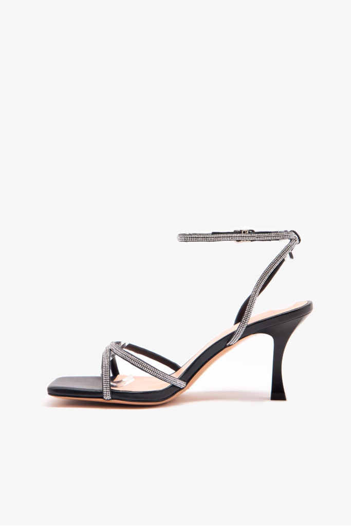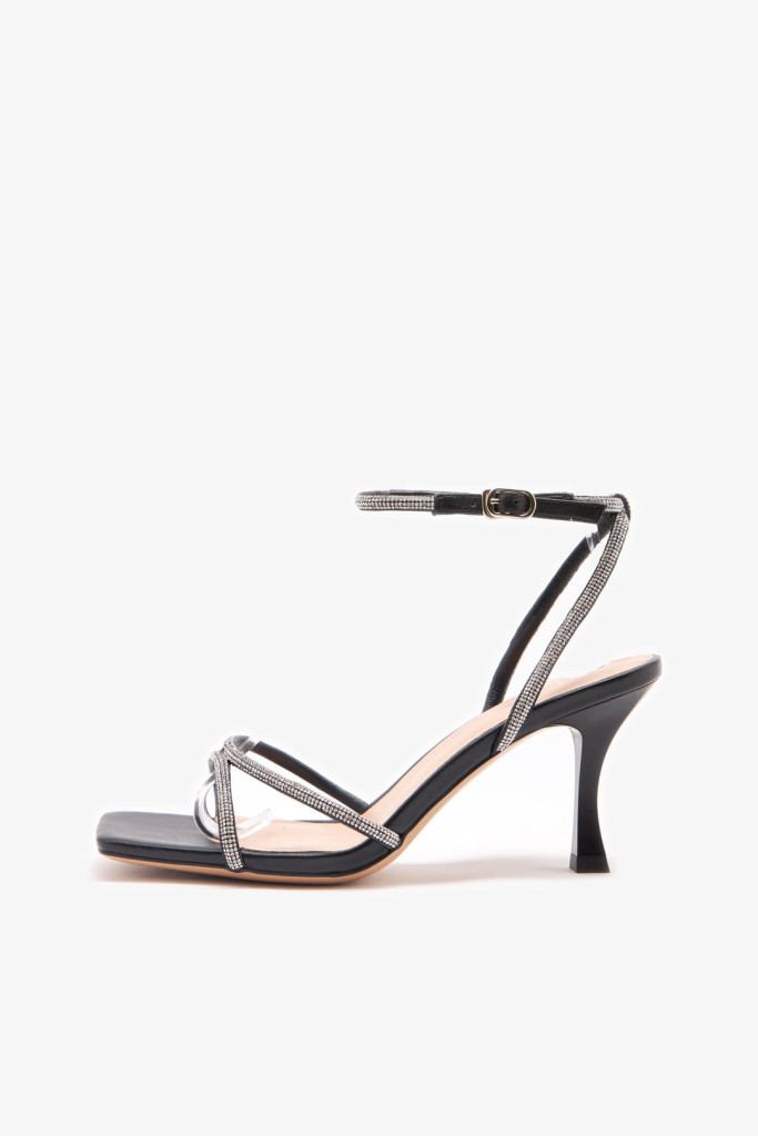 Открытая пятка и открытый мыс, а также стразы на ремешках придают этой модели особый шарм и утонченность. Устойчивый каблук обеспечивает удобство при ходьбе, делая эту обувь универсальной для различных образов.