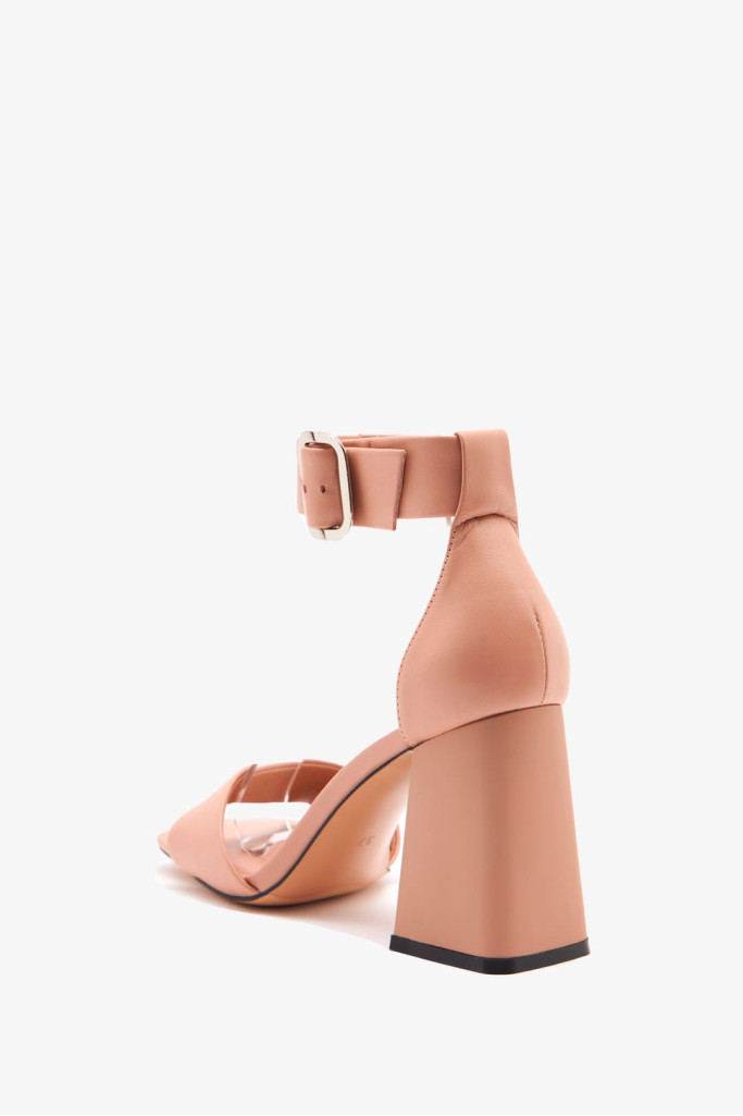 Закрытая пятка и открытый мыс придают этой модели особый шарм и утонченность.  Широкий и устойчивый каблук обеспечивает удобство при ходьбе, делая эту обувь универсальной для различных образов.