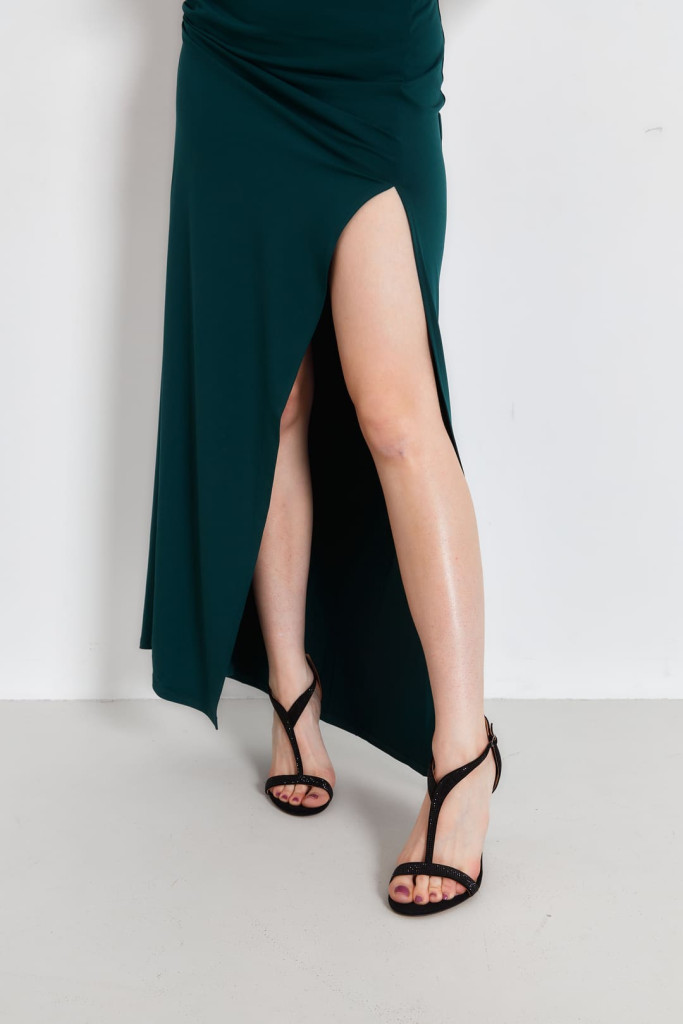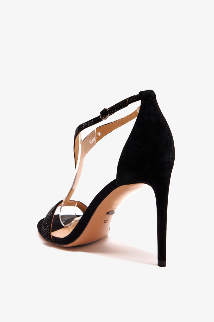 Закрытая пятка и открытый мыс, а также ремешки со стразами придают этой модели особый шарм и утонченность. Устойчивый каблук-шпилька обеспечивает удобство при ходьбе, делая эту обувь универсальной для различных образов.
