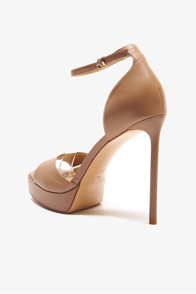 Закрытая пятка и открытый мыс  придают этой модели особый шарм и утонченность. Устойчивый каблук-шпилька и небольшая платформа обеспечивает удобство при ходьбе, делая эту обувь универсальной для различных образов.