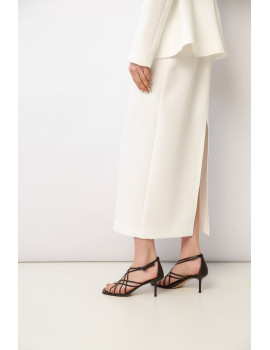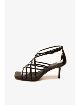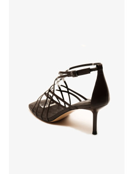 Открытая пятка, открытый прямоугольный мыс и тонкие ремешки со стразами придают этой модели особый шарм и утонченность. Каблук-шпилька обеспечивает удобство при ходьбе, делая эту обувь универсальной для различных образов.