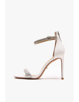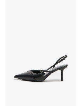 Открытая пятка, закрытый заостренный мыс и ремешки со стразами придают этой модели особый шарм и утонченность. Устойчивый каблук-шпилька обеспечивает удобство при ходьбе, делая эту обувь универсальной для различных образов.