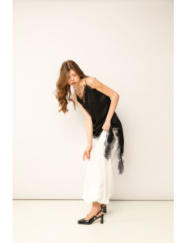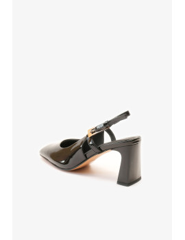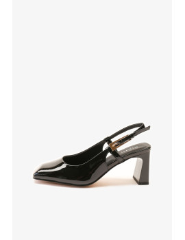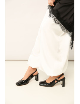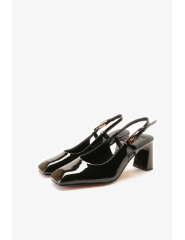 Открытая пятка и открытый прямоугольный мыс придают этой модели особый шарм и утонченность. Широкий и устойчивый каблук обеспечивает удобство при ходьбе, делая эту обувь универсальной для различных образов.