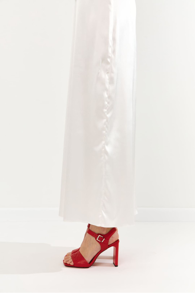Открытая пятка, открытый прямоугольный мыс и ремешок на щиколотке с застежкой придают этой модели особый шарм и утонченность. Широкий и устойчивый каблук обеспечивает удобство при ходьбе, делая эту обувь универсальной для различных образов.