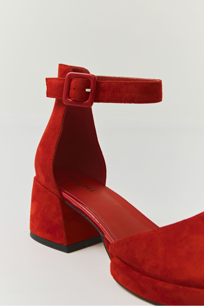 Босоножки 2224T выглядят очень стильно и элегантно. Красный цвет  добавляет особый шарм и позволяет легко сочетать с различными нарядами. Качественная натуральная замша обеспечивает не только качество и комфорт, но и придает обуви роскошный вид. Открытый мыс, закрытая пятка и устойчивый каблук делают эту модель не только стильной, но и удобной для повседневной носки. Они подойдут как для вечерних образов, так и для более повседневных ситуаций.