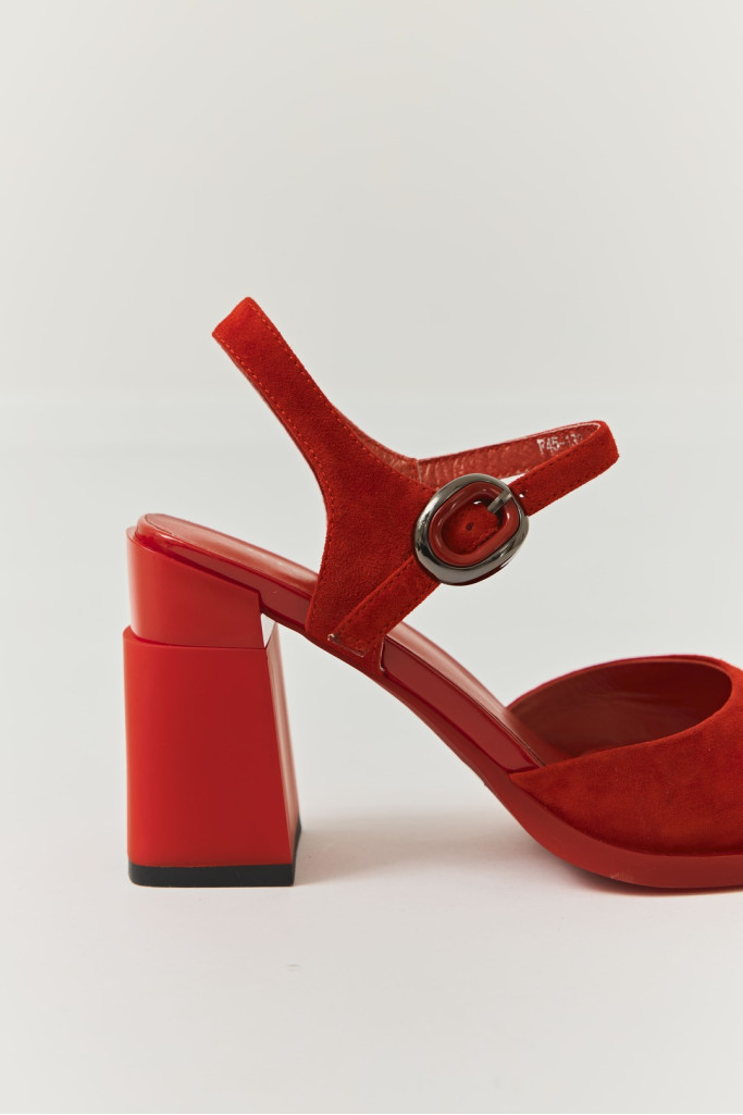 Открытая пятка, открытый прямоугольный мыс и ремешок на щиколотке с застежкой придают этой модели особый шарм и утонченность. Широкий и устойчивый каблук обеспечивает удобство при ходьбе, делая эту обувь универсальной для различных образов.