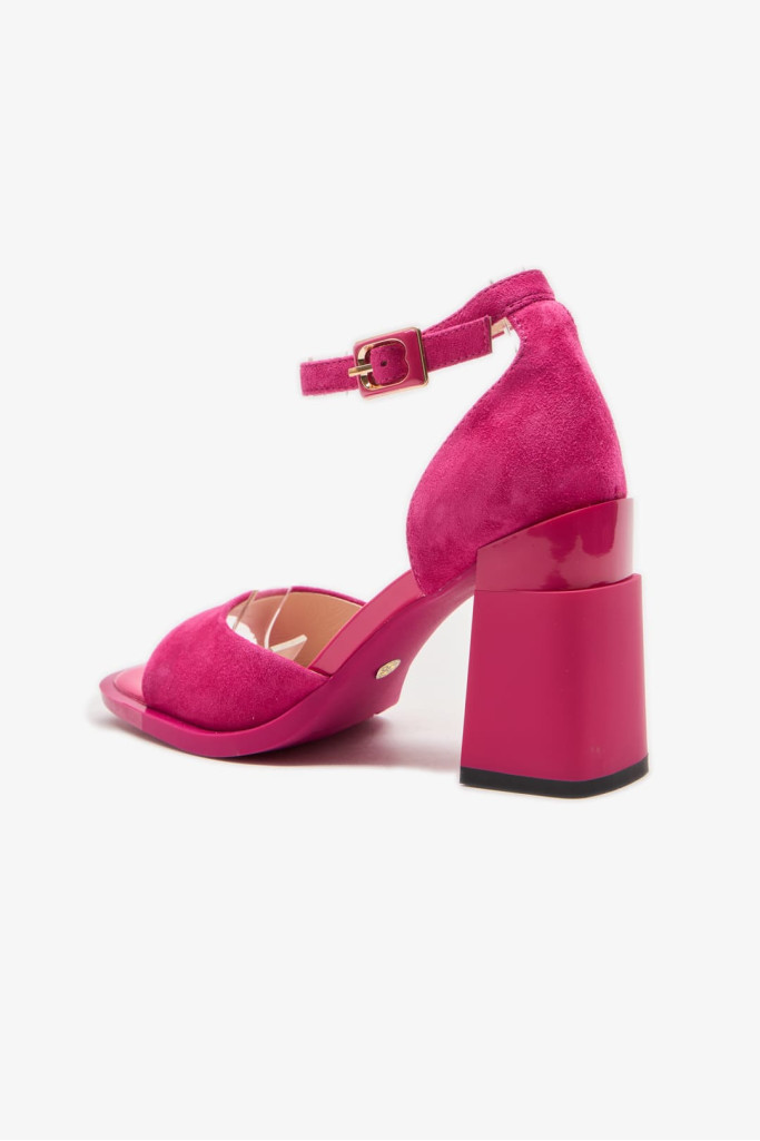 Закрытая пятка, открытый прямоугольный мыс и ремешок на щиколотке с застежкой придают этой модели особый шарм и утонченность. Широкий и устойчивый каблук оригинальной формы обеспечивает удобство при ходьбе, делая эту обувь универсальной для различных образов.