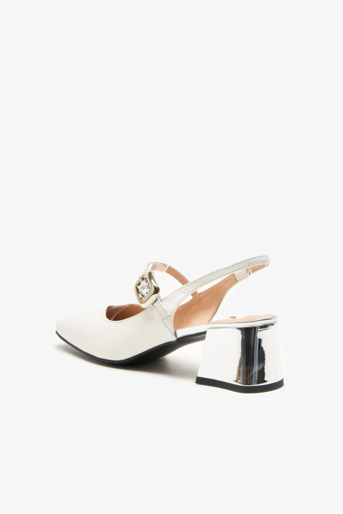 Открытая пятка, закрытый мыс и ремешок с застежкой, придают этой модели особый шарм и утонченность. Широкий и устойчивый каблук обеспечивает удобство при ходьбе, делая эту обувь универсальной для различных образов.