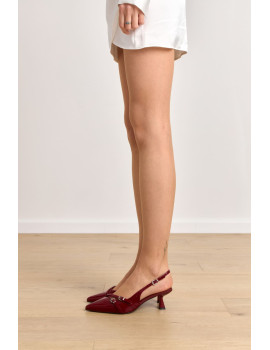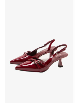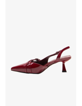 Открытая пятка , открытый прямоугольный мыс и ремешок с застежкой на щиколотке придают этой модели особый шарм и утонченность. Каблук-шпилька обеспечивает удобство при ходьбе, делая эту обувь универсальной для различных образов.