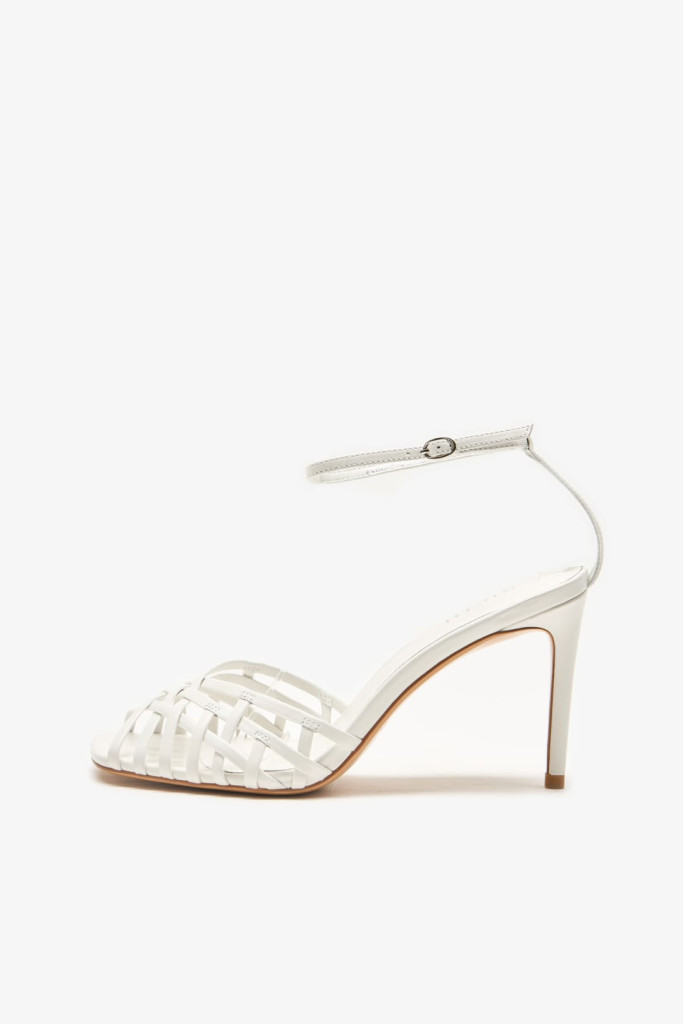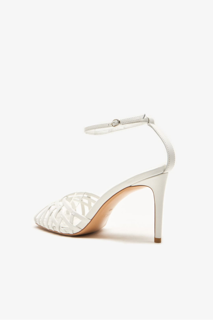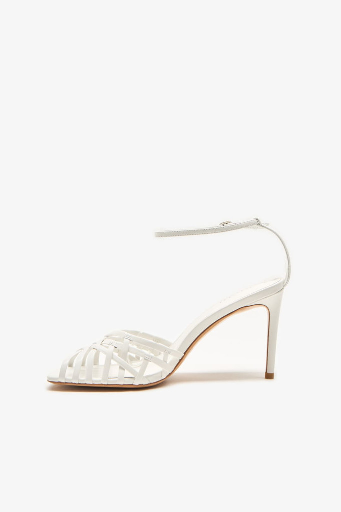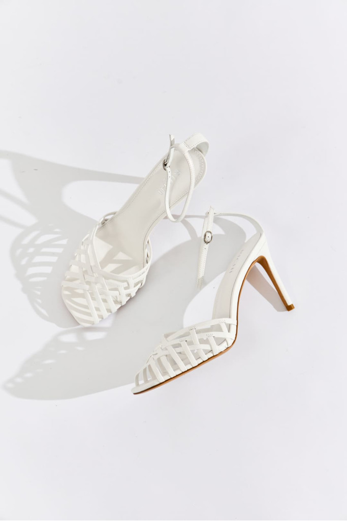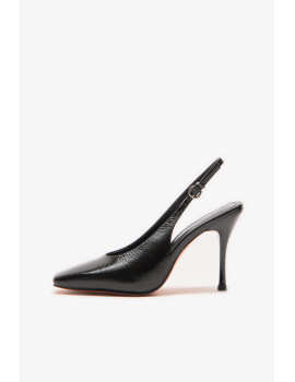 Открытая пятка , открытый прямоугольный мыс и ремешок с застежкой на щиколотке придают этой модели особый шарм и утонченность. Каблук-шпилька обеспечивает удобство при ходьбе, делая эту обувь универсальной для различных образов.