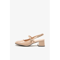 Открытая пятка, закрытый мыс и ремешок с застежкой, придают этой модели особый шарм и утонченность. Широкий и устойчивый каблук обеспечивает удобство при ходьбе, делая эту обувь универсальной для различных образов.