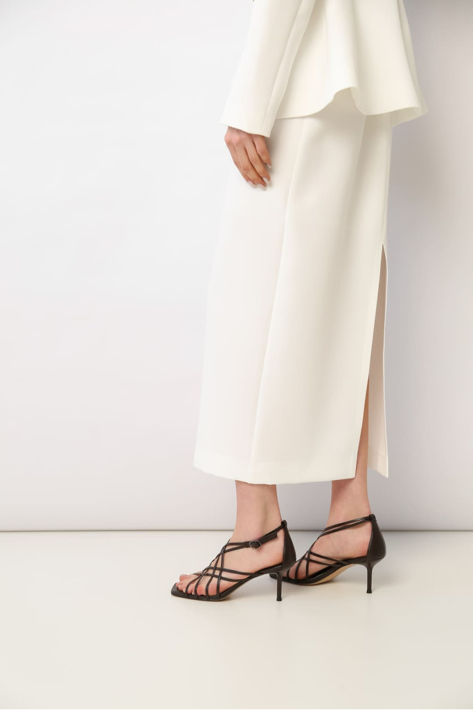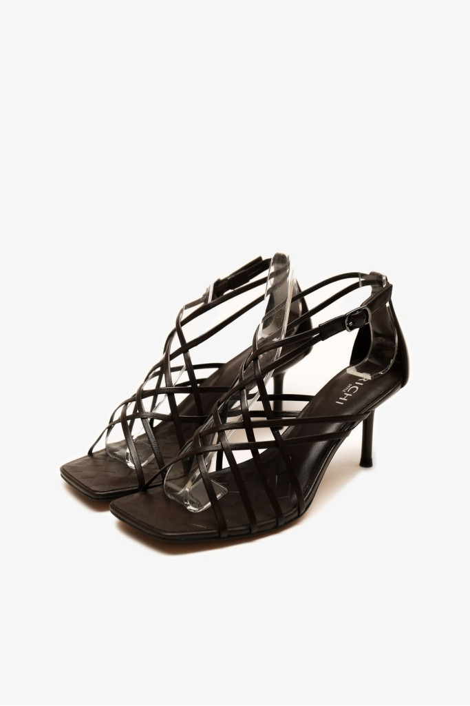 Закрытая пятка и открытый прямоугольный мыс добавляют нотку современности, а ремешок с застежкой на щиколотке обеспечивает надежную фиксацию и подчеркивает изящность ноги. Каблук-шпилька не только визуально удлиняет ноги, но и позволяет легко сочетать босоножки с различными стилями одежды — от коктейльных платьев до легких летних сарафанов.