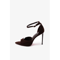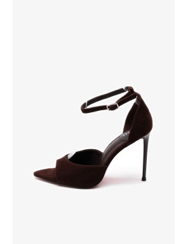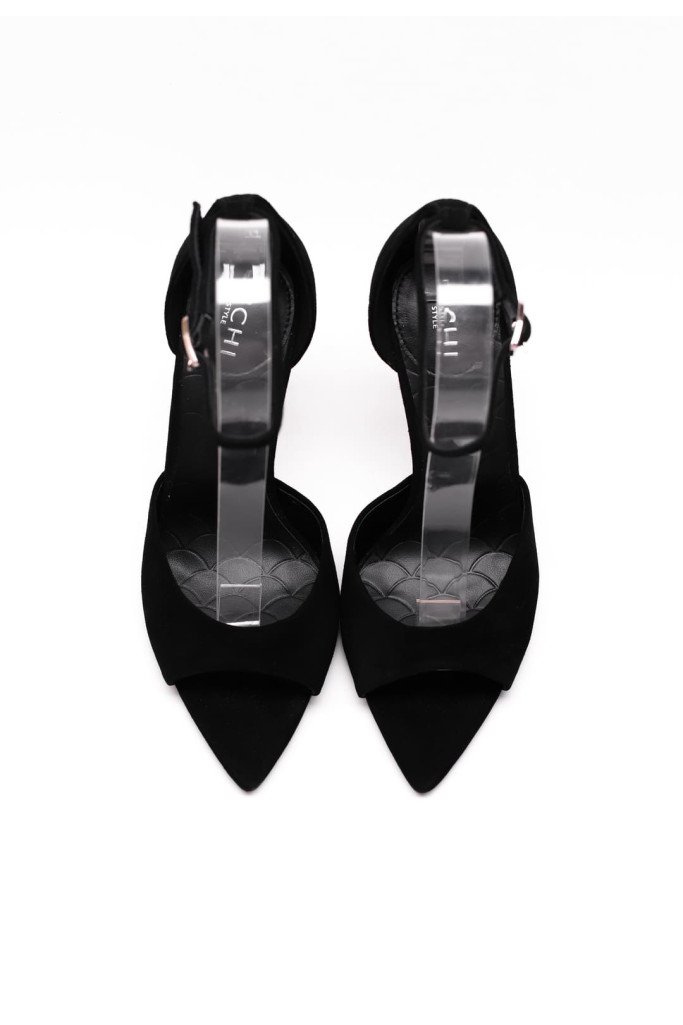 Закрытая пятка и открытый заостренный мыс создают гармоничный контраст, а ремешок с застежкой на щиколотке добавляет нотку утонченности. Устойчивый каблук-шпилька обеспечивает комфорт при длительной носке, что делает эту модель универсальной для различных случаев — от повседневных прогулок до вечерних выходов.