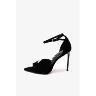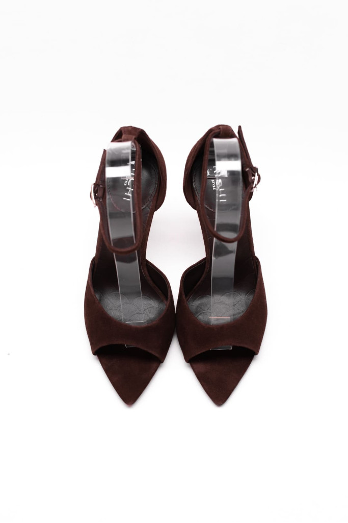 Закрытая пятка и открытый заостренный мыс создают гармоничный контраст, а ремешок с застежкой на щиколотке добавляет нотку утонченности. Устойчивый каблук-шпилька обеспечивает комфорт при длительной носке, что делает эту модель универсальной для различных случаев — от повседневных прогулок до вечерних выходов.