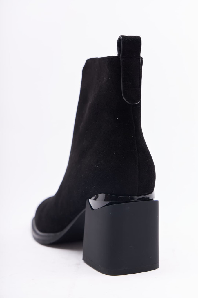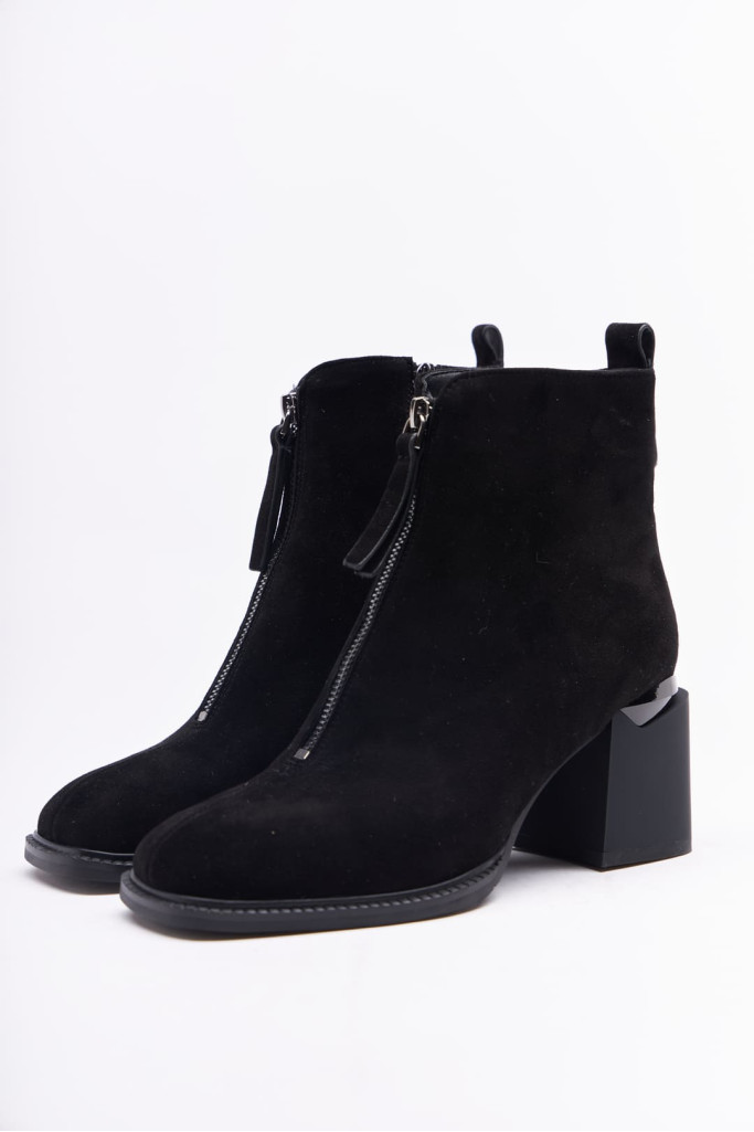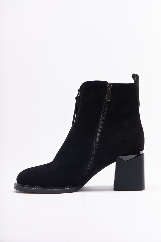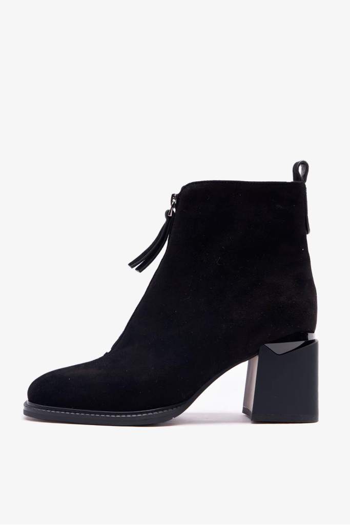 Комфортные ботильоны 1038 изготовлены из натуральной замши черного цвета.