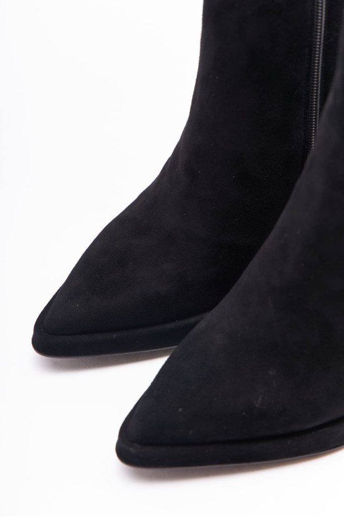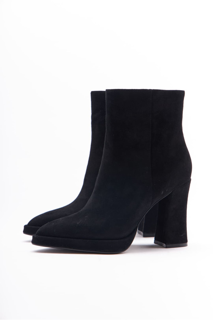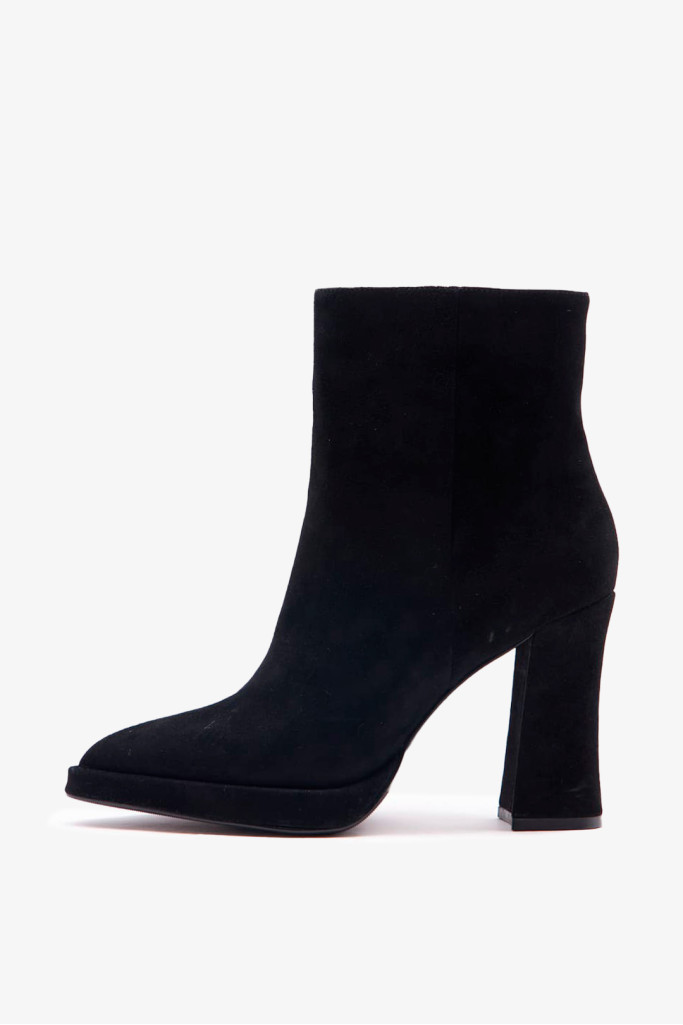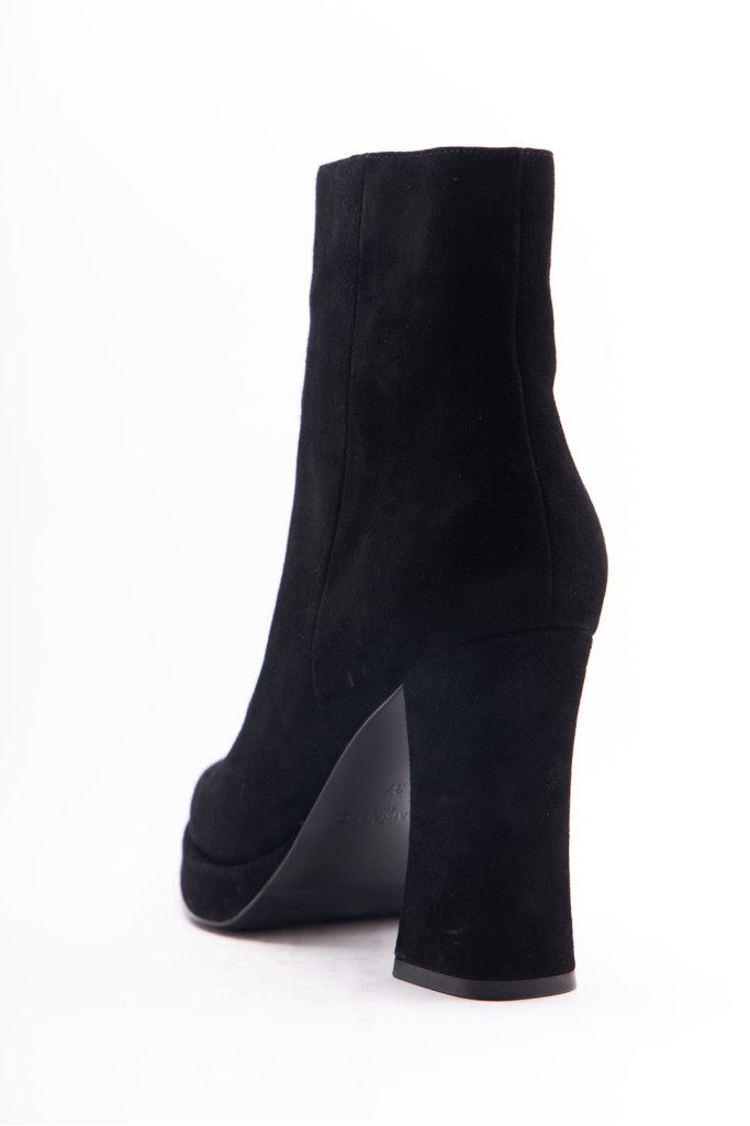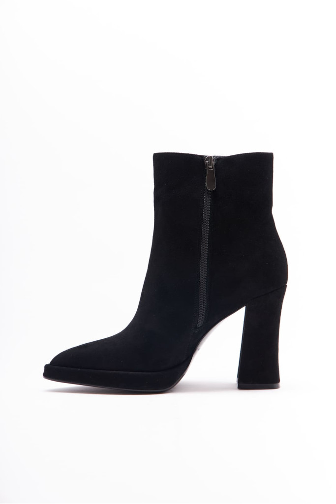 Ботильоны 1084 из натуральной замши черного цвета представляют собой стильную и удобную обувь. Их особенности, включая заостренный мыс и широкий устойчивый каблук, делают их отличным выбором для комфортной и стильной ходьбы. Высота каблука составляет 10 см, что придает обуви элегантный вид. Материал подошвы - полимер (ТЭП), а внутренняя отделка выполнена из ворсина. Верх ботильонов выполнен из натуральной замши, что придает им роскошный вид.