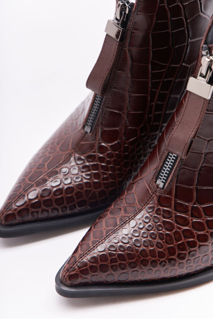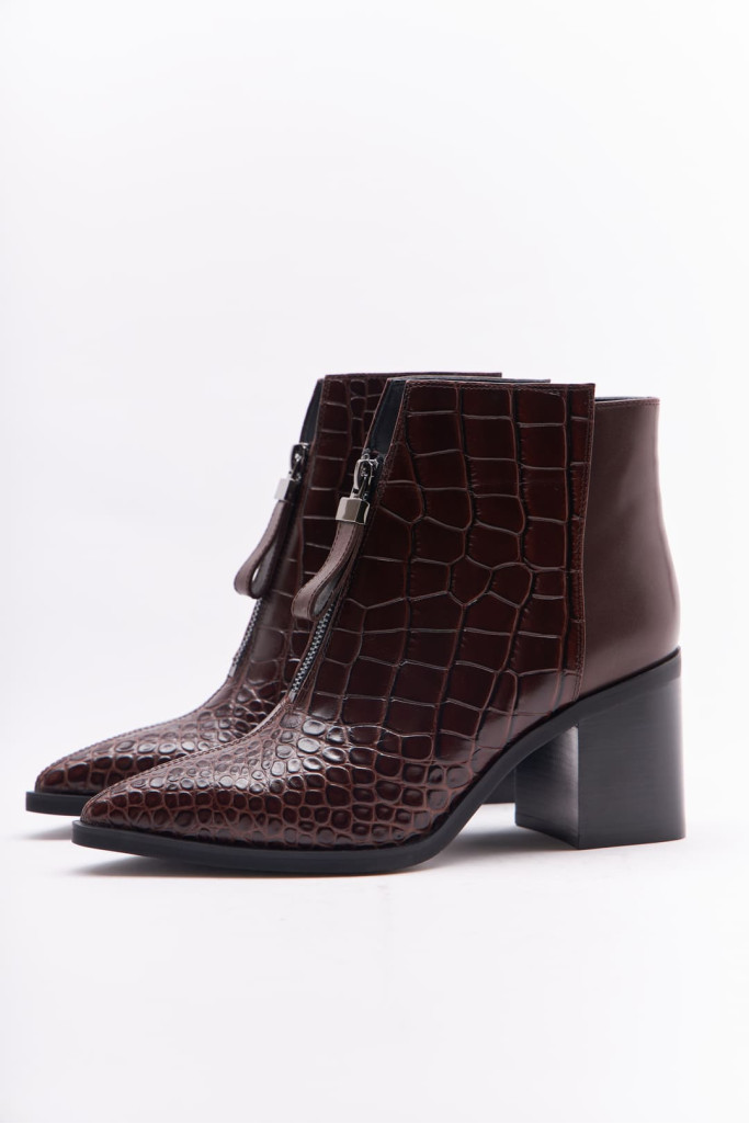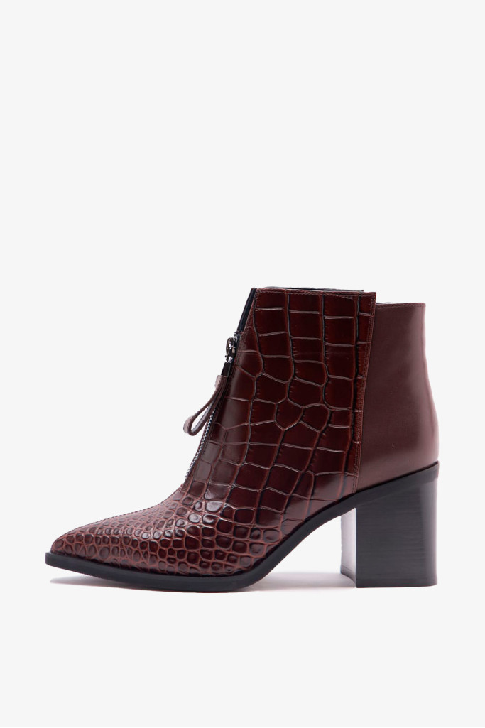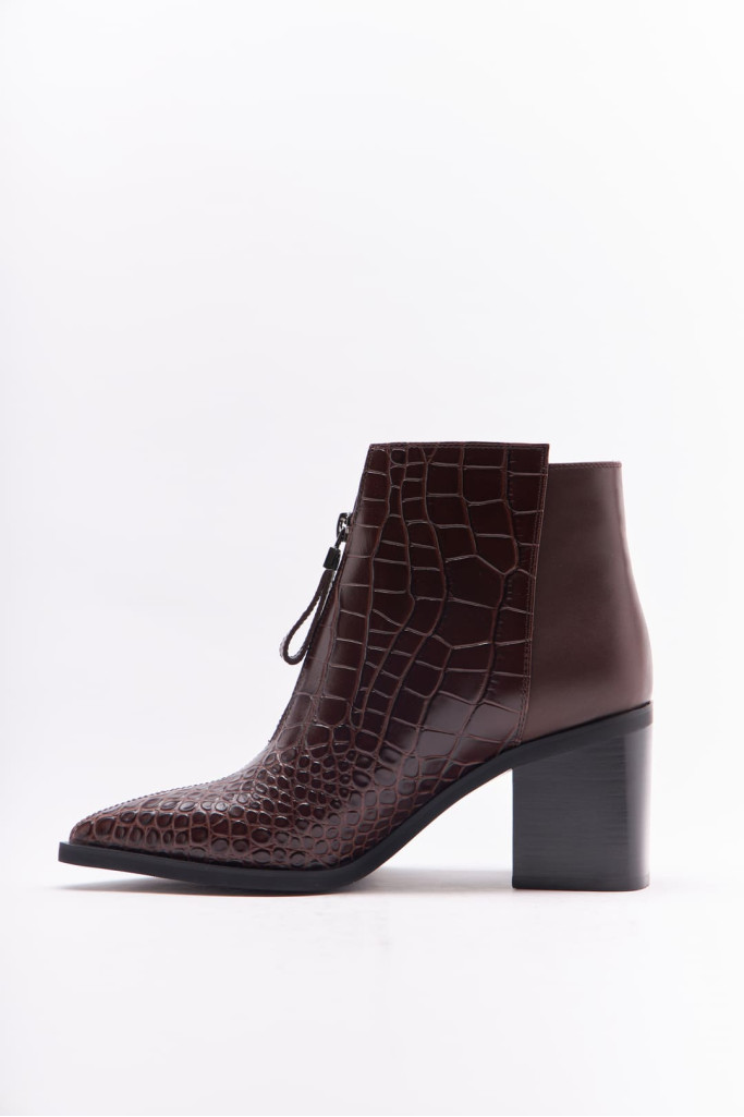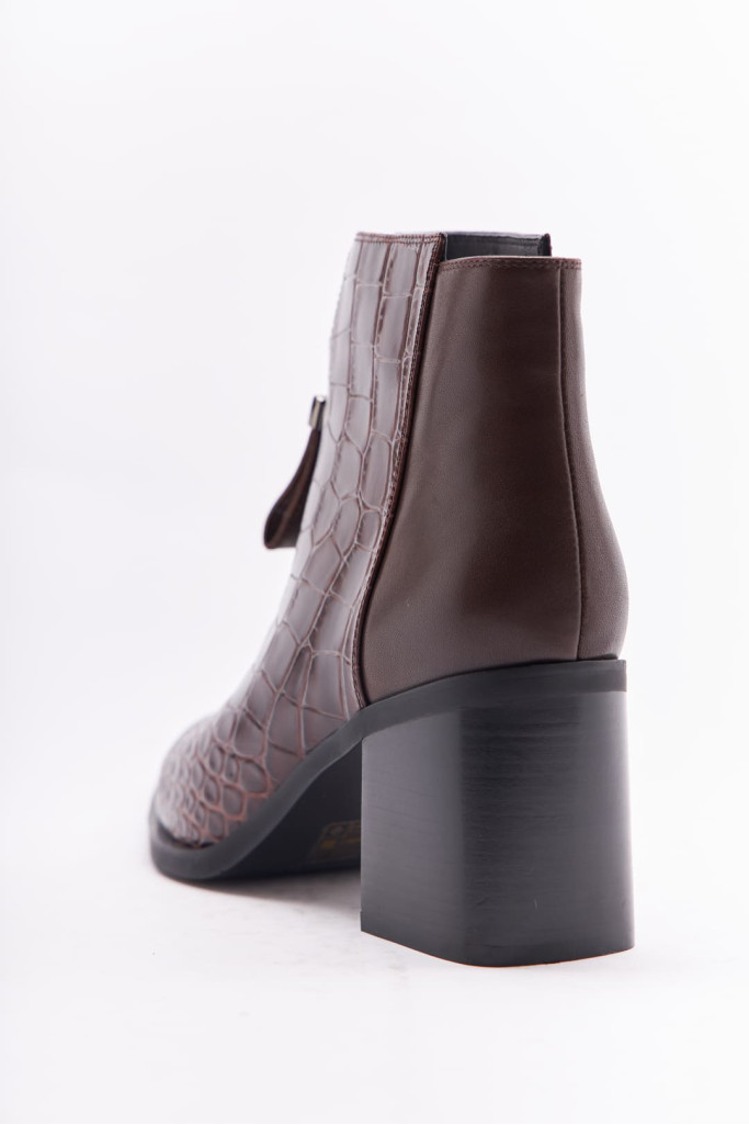 Ботильоны 1215 - идеальный выбор для тех, кто ценит стиль, комфорт и элегантность. Их коричневый цвет и фактура "под рептилию" придают им уникальный и изысканный вид.