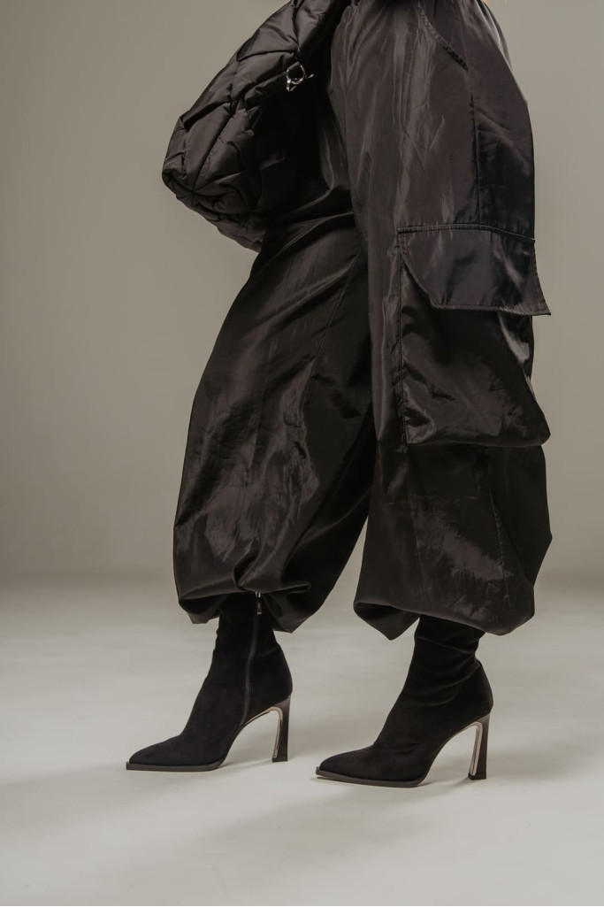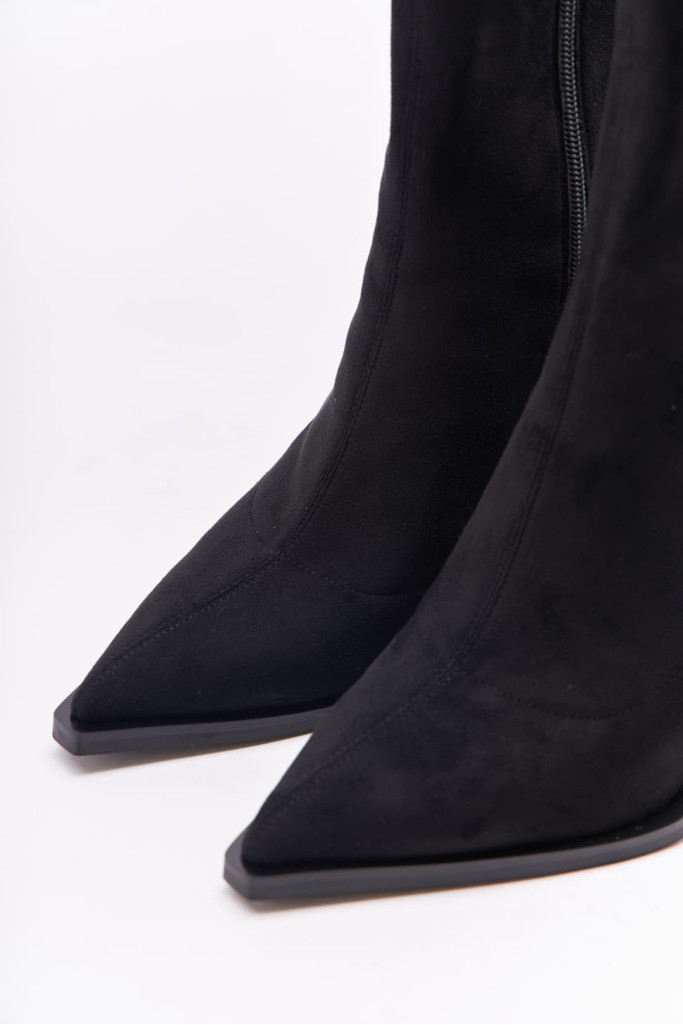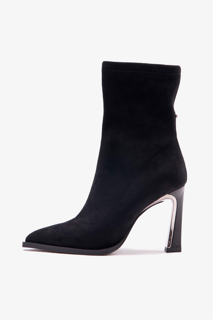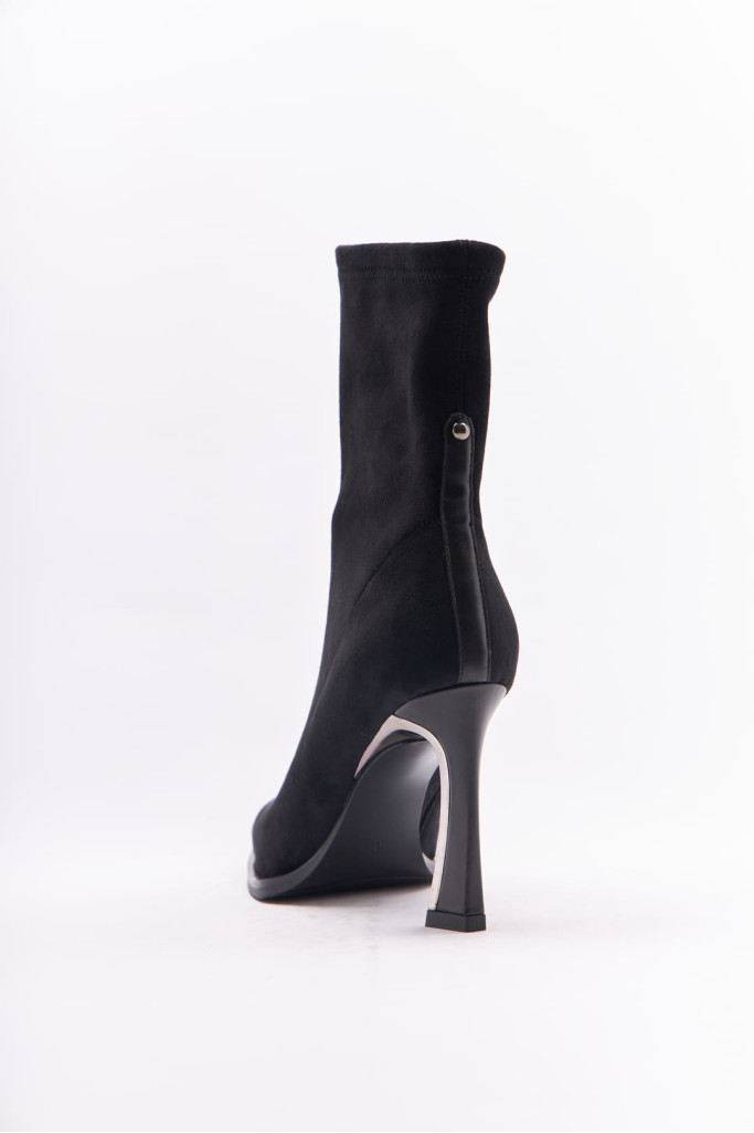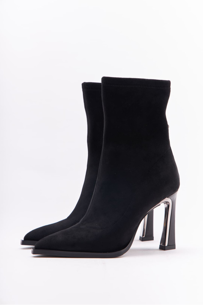 Ботильоны черного цвета 1217 выполнены из качественной натуральной замши. Их ключевая особенность - заостренный мыс, застежка на молнию с внутренней стороны. Характеристики товара включают высоту каблука-шпильки в 10 см, подошва из непористой резины, внутренняя отделка из ворсина и верх из натуральной замши+стрейч.