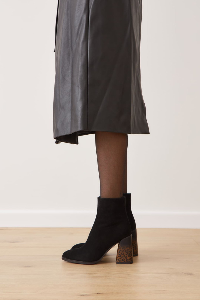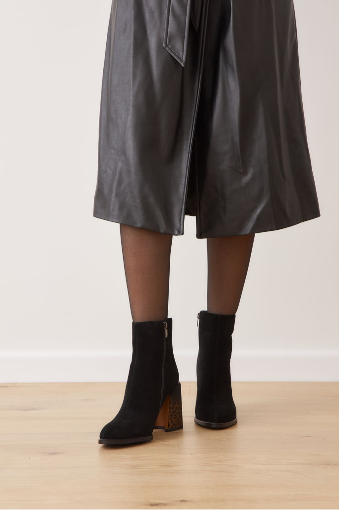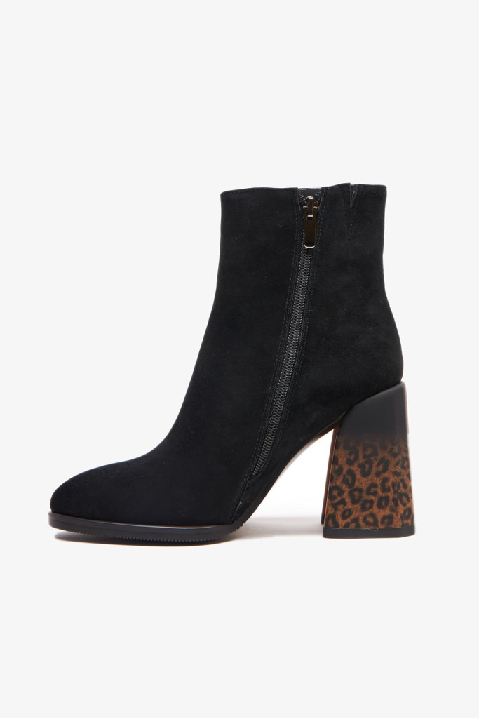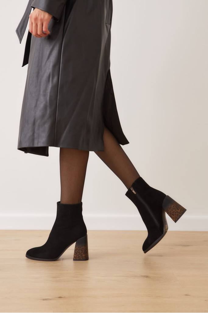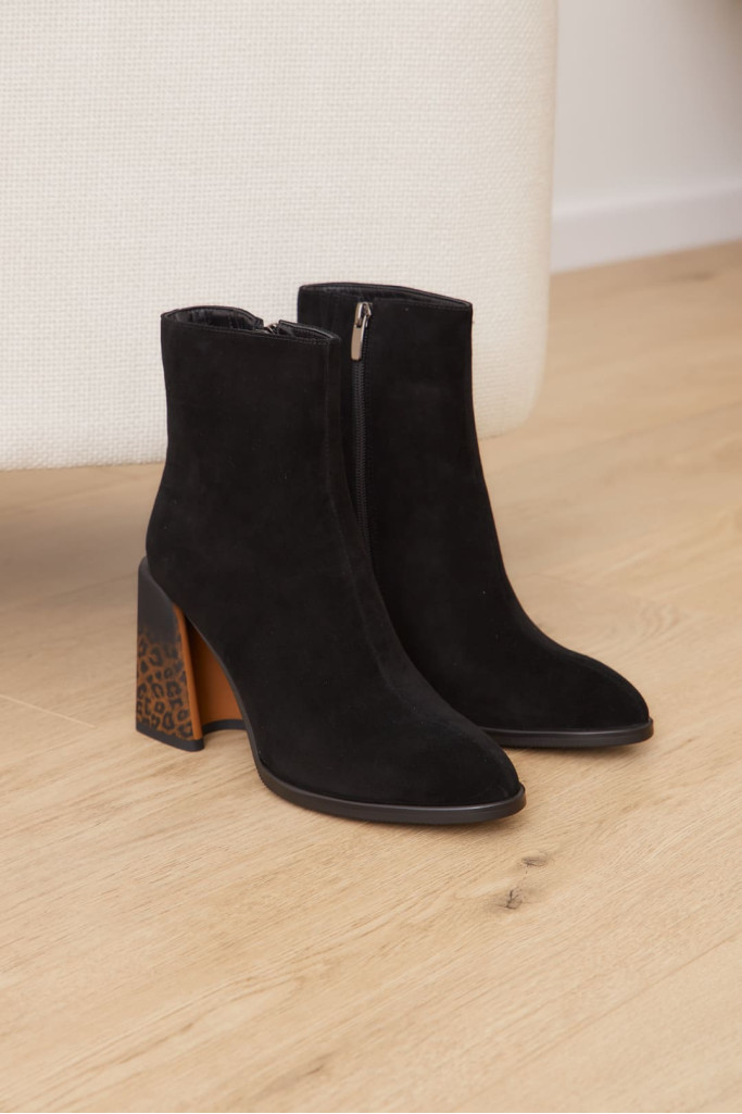 Широкий и устойчивый каблук  леопардовым принтом, застежка на молнию, подчеркивают их удобство и практичность. Материалы верха, внутренней отделки и подошвы также гарантируют комфорт и долговечность.