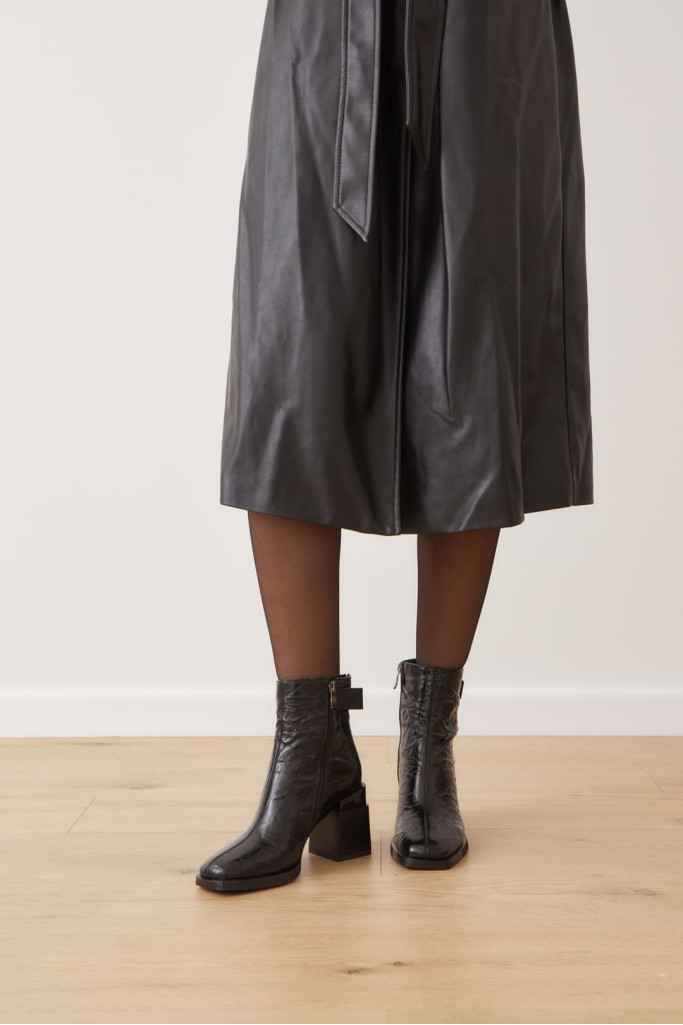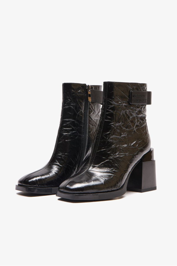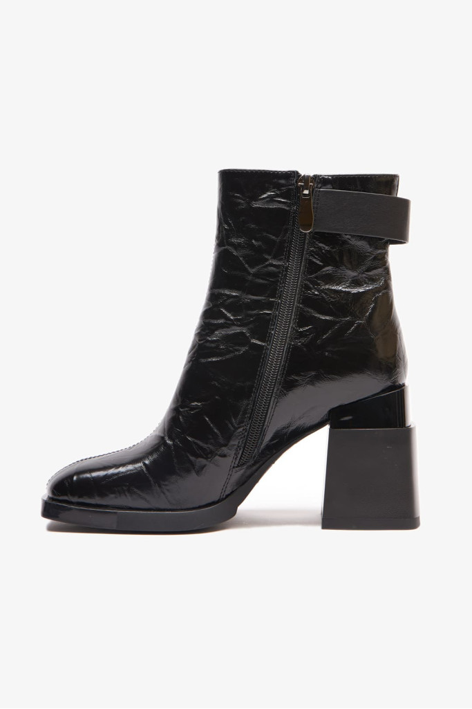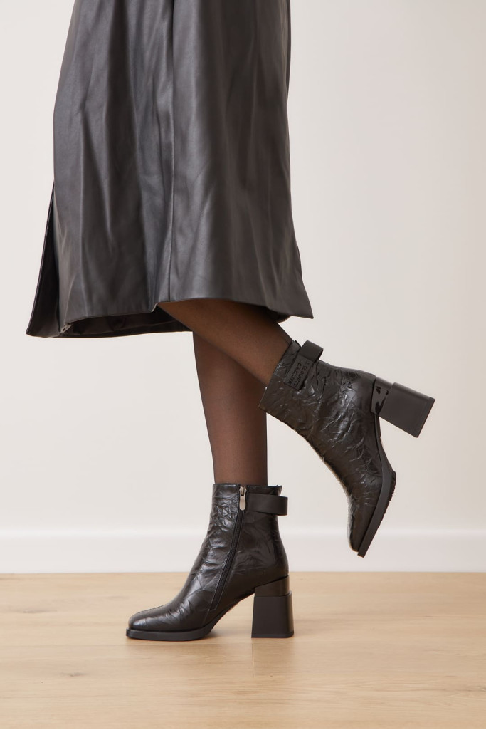 Широкий и устойчивый каблук оригинальной формы, декоративный элемент на голенище, застежка на молнию, подчеркивают их удобство и практичность. Материалы верха, внутренней отделки и подошвы также гарантируют комфорт и долговечность.
