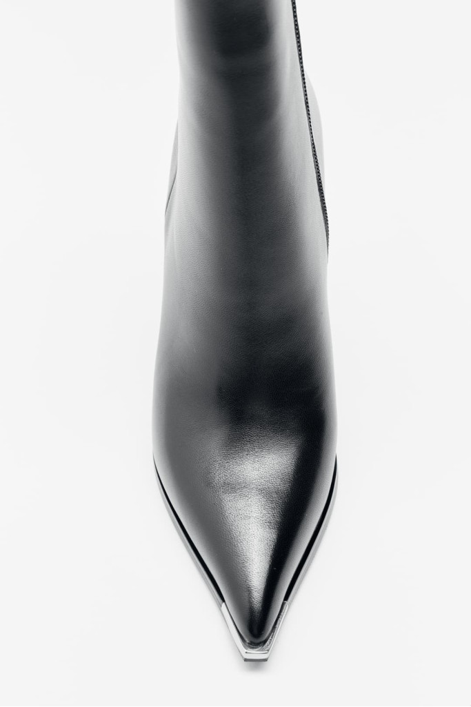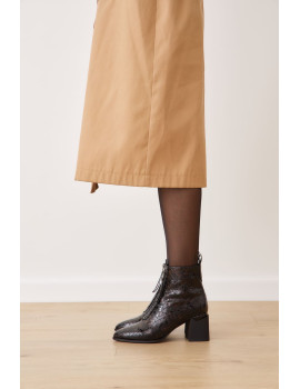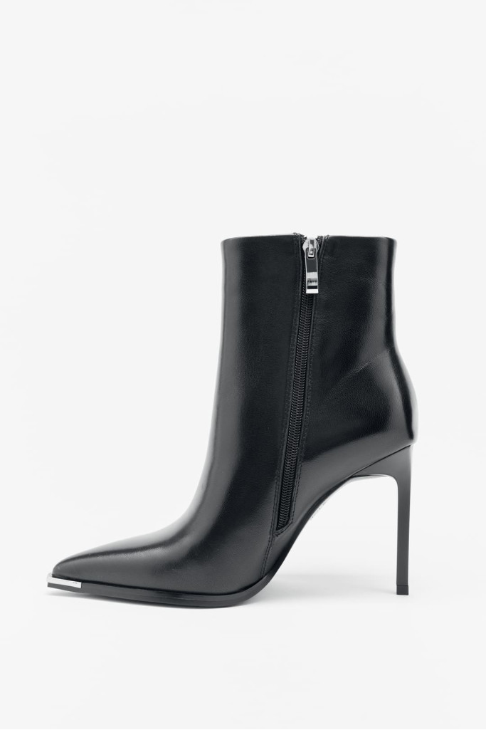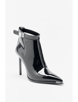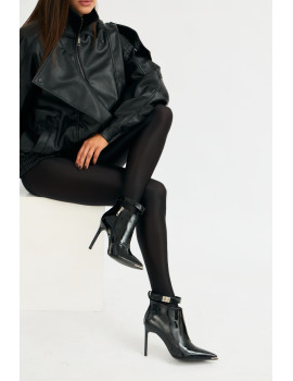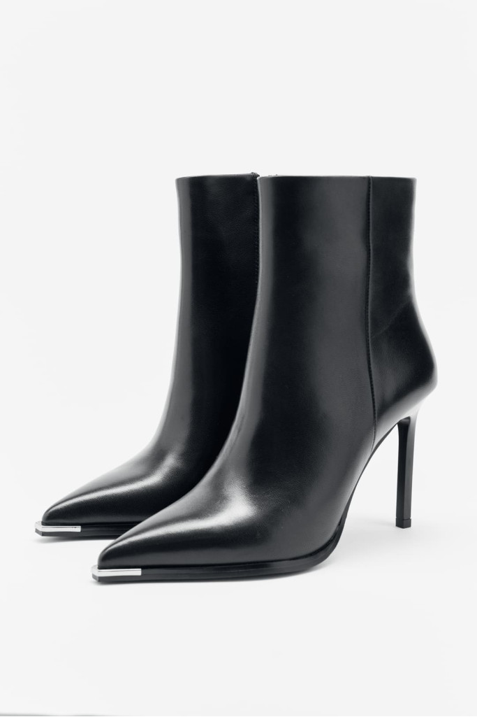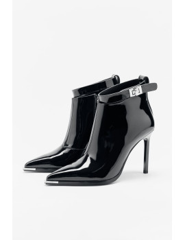Устойчивый каблук-шпилька, застежка на молнию, заостренный мыс с металлическим декором подчеркивают их удобство и практичность. Материалы верха, внутренней отделки и подошвы также гарантируют комфорт и долговечность.