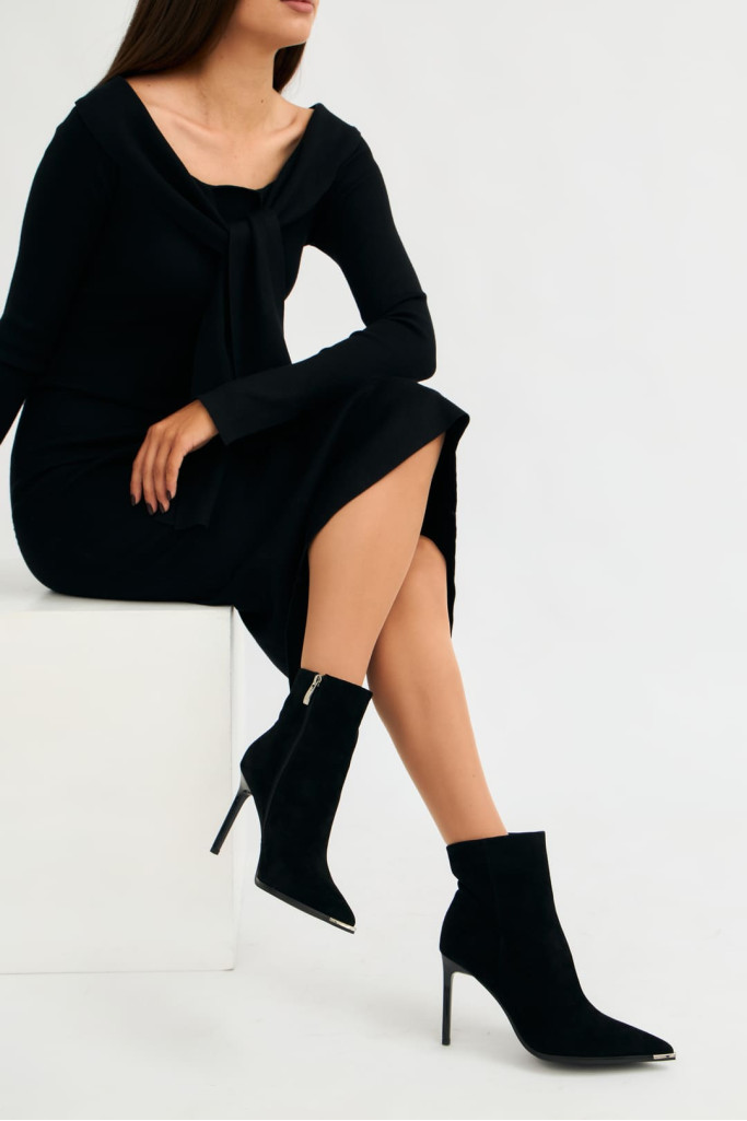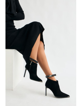 Ботильоны 2132P из высококачественной натуральной замши чёрного цвета - это отличный выбор для стильного и удобного дополнения к различным образам. Их оригинальный дизайн и цвет позволяют легко комбинировать их с разнообразной одеждой, создавая элегантные и модные образы.