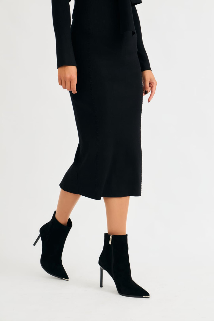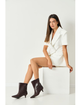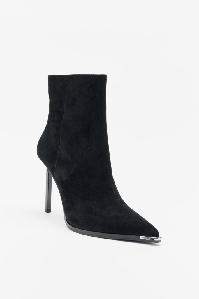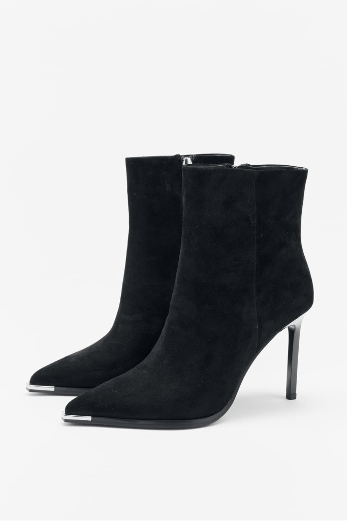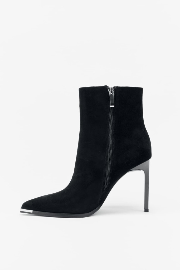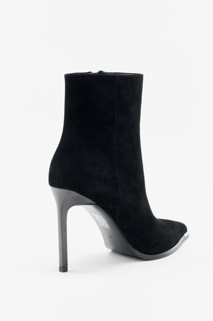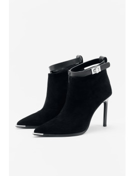 Устойчивый каблук-шпилька, застежка на молнию, заостренный мыс с металлическим декором  подчеркивают их удобство и практичность. Материалы верха, внутренней отделки и подошвы также гарантируют комфорт и долговечность.