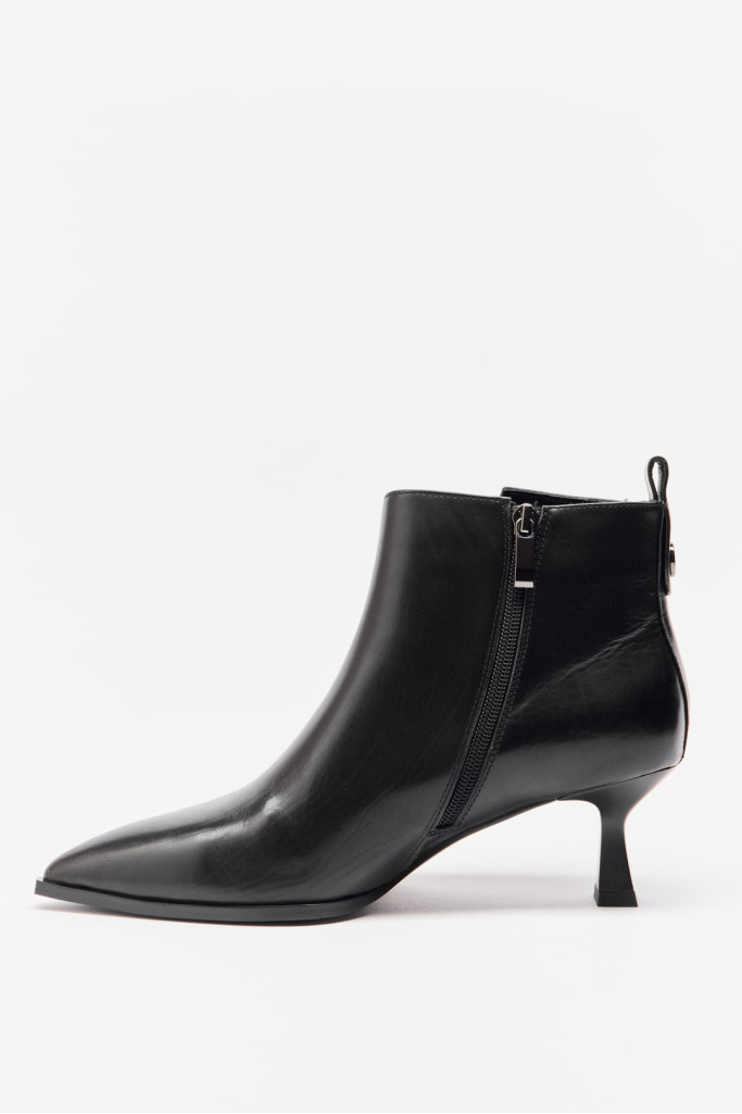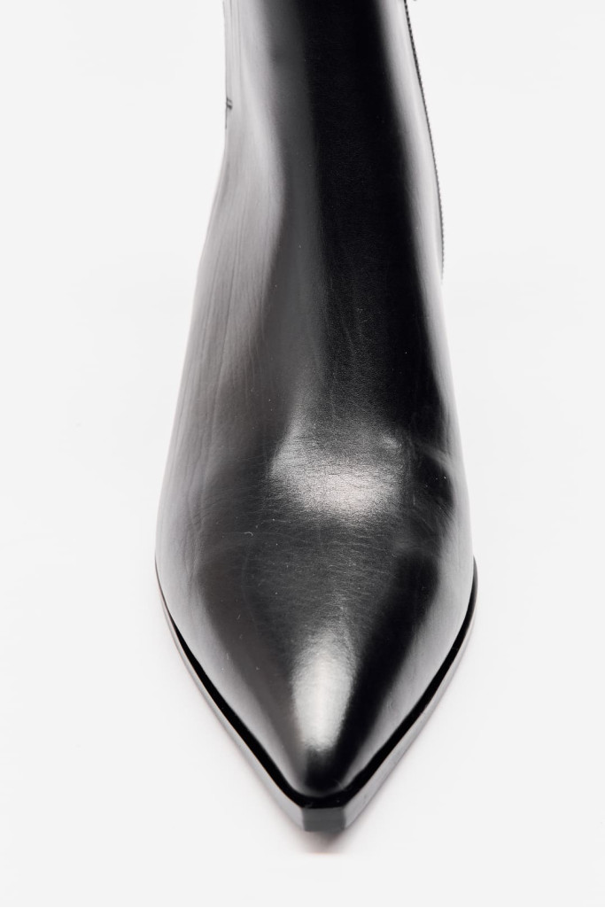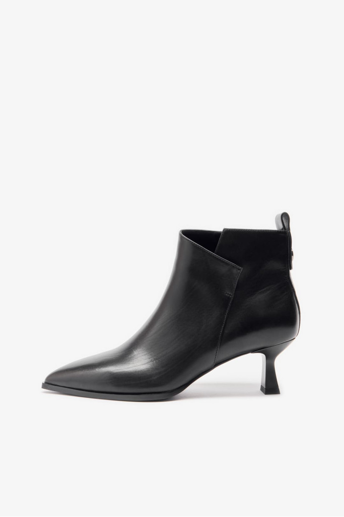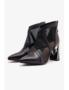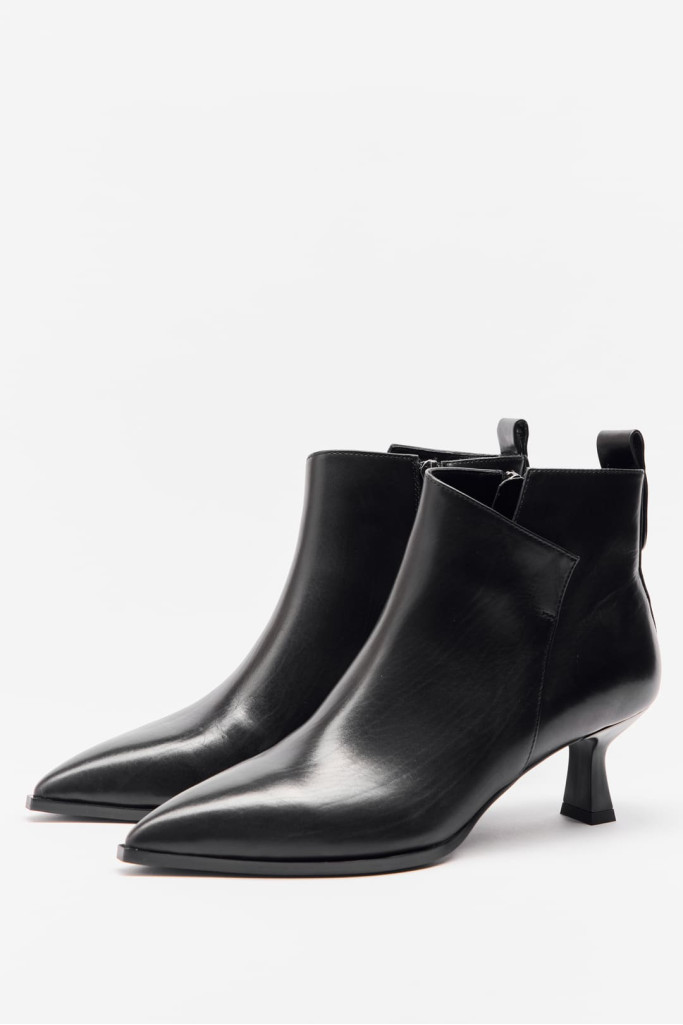 Ботильоны 2371 выполнены из качественной натуральной кожи и представлены в чёрном цвете. Натуральная кожа обеспечивает не только привлекательный внешний вид, но и комфорт при носке. Уникальный силуэт модели и устойчивый тонкий каблук оригинальной формы придает сапогам женственный и утончённый вид.
