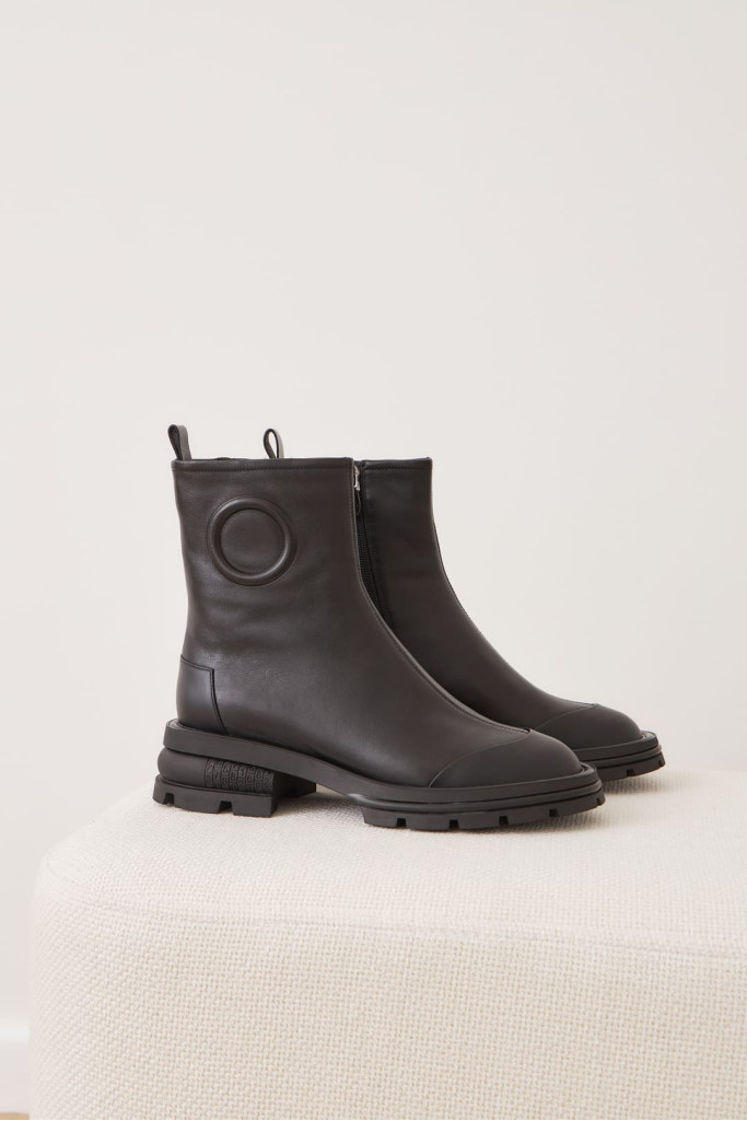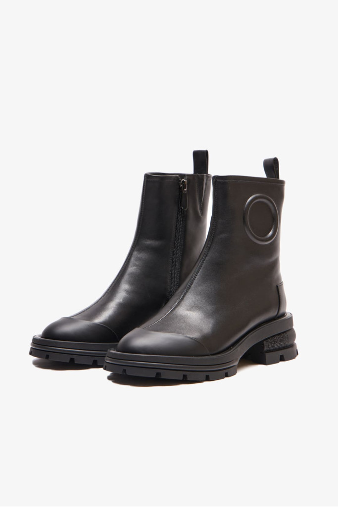 Ботинки 2046 в черном цвете выполнены из качественной натуральной кожи. Их ключевая особенность - закругленный мыс, застежка на молнию с внутренней стороны, тиснение в виде геометрического круга на голенище. Характеристики товара включают высоту каблука в 75 см, подошва из непористой резины и верх из натуральной замши. Эти ботинки идеально подходят для создания стильного образа в различных ситуациях. Они подойдут как для повседневных прогулок, так и для особых мероприятий. Они отлично сочетаются с джинсами, юбками и платьями, добавляя шик и элегантность к любому наряду.