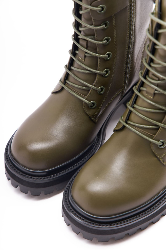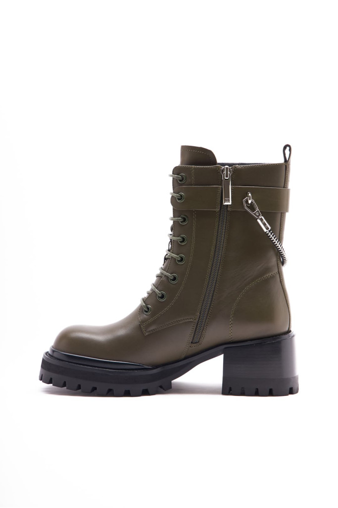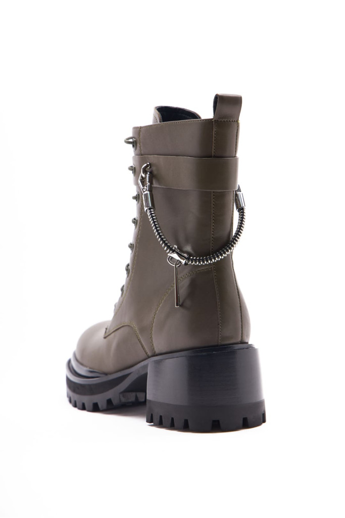 Ботинки BASCONI 28806B-B из натуральной кожи цвета хаки - это выбор для стильных женщин, которые ценят комфорт и красоту в обуви. Удобная шнуровка на подъеме и застежка на молнию облегчают процесс надевания и снятия обуви, а съемный металлический декор добавляет интересный акцент и индивидуальность.