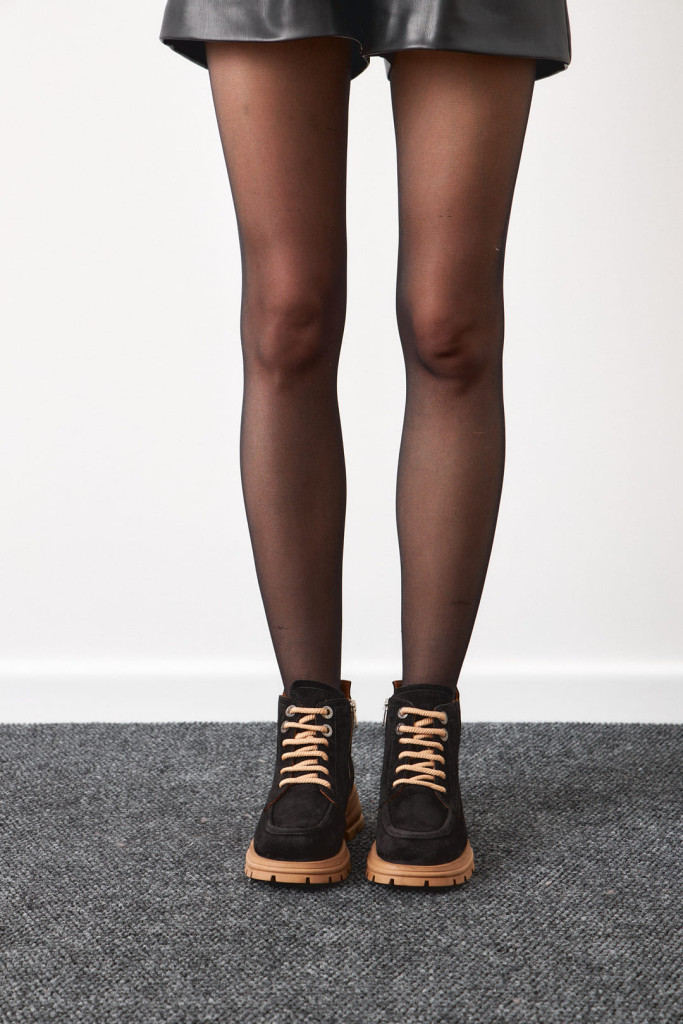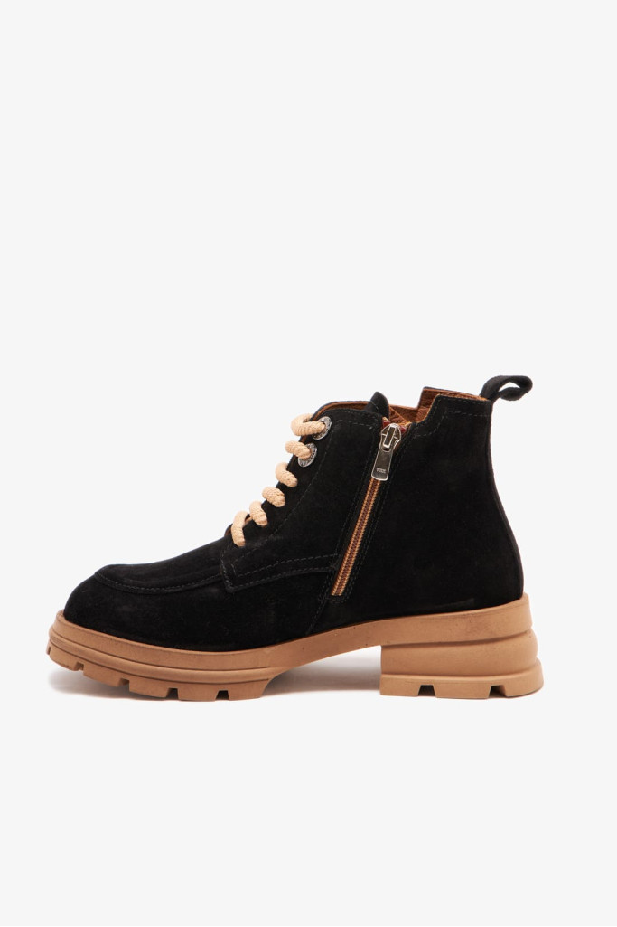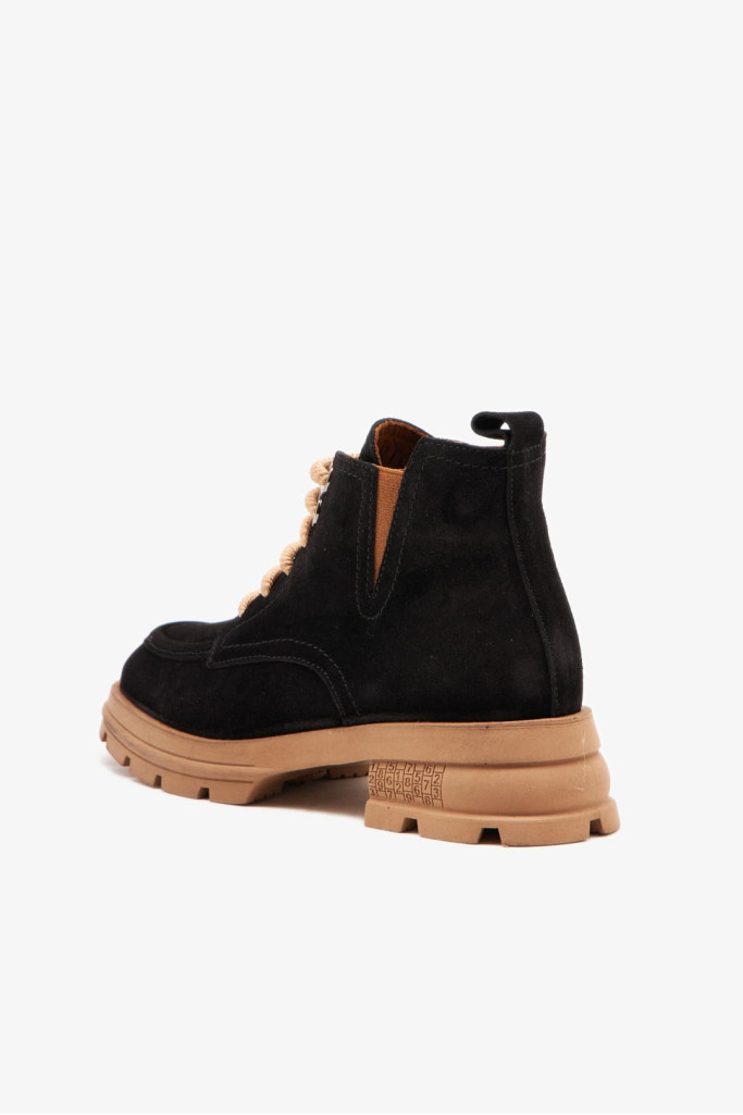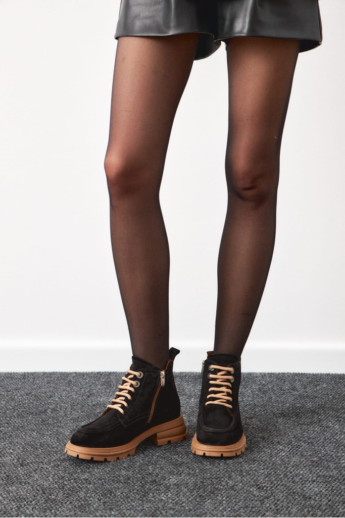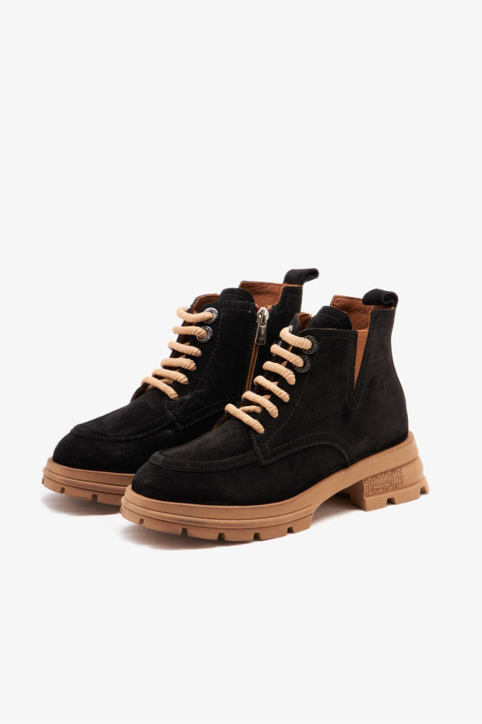 Ботинки 2105P из натуральной замши черного цвета - это отличный выбор для стильного и удобного дополнения к различным образам. Их универсальный дизайн и цвет позволяют легко комбинировать их с разнообразной одеждой, создавая элегантные и модные образы.