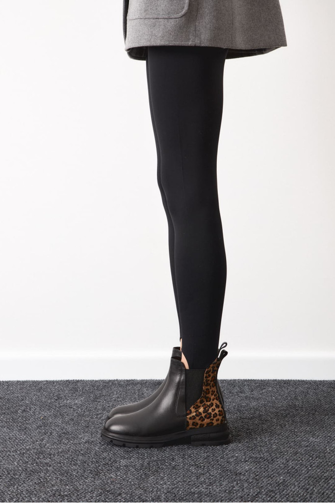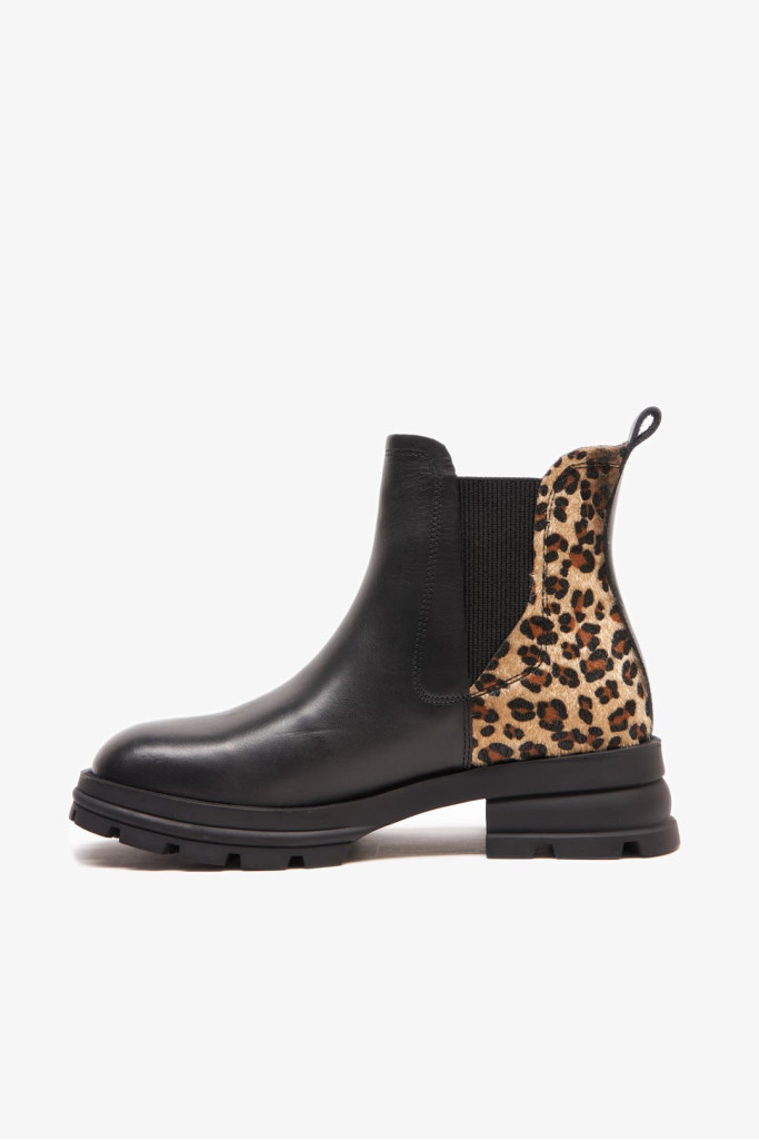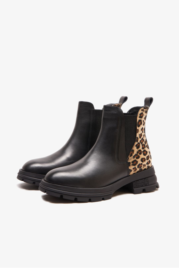 Ботинки 2108 из комбинации натуральной кожи черного цвета и натуральной кожи, покрытой ворсом, с анималистическим принтом - это отличный выбор для стильного и удобного дополнения к различным образам. Их универсальный дизайн и цвет позволяют легко комбинировать их с разнообразной одеждой, создавая элегантные и модные образы.