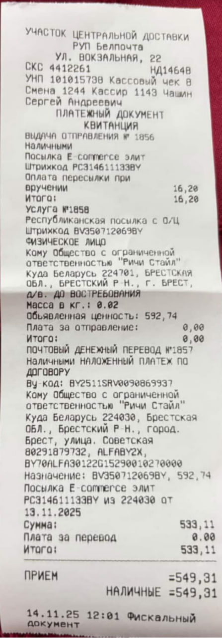 • Доставка осуществляется курьером БЕЛПОЧТЫ.
