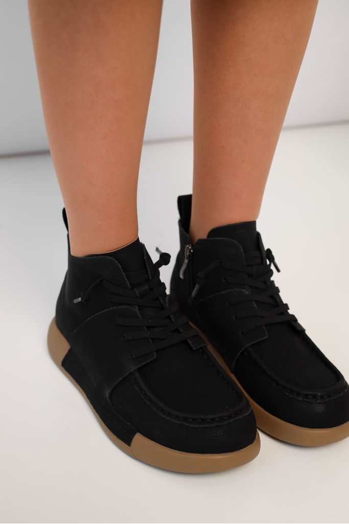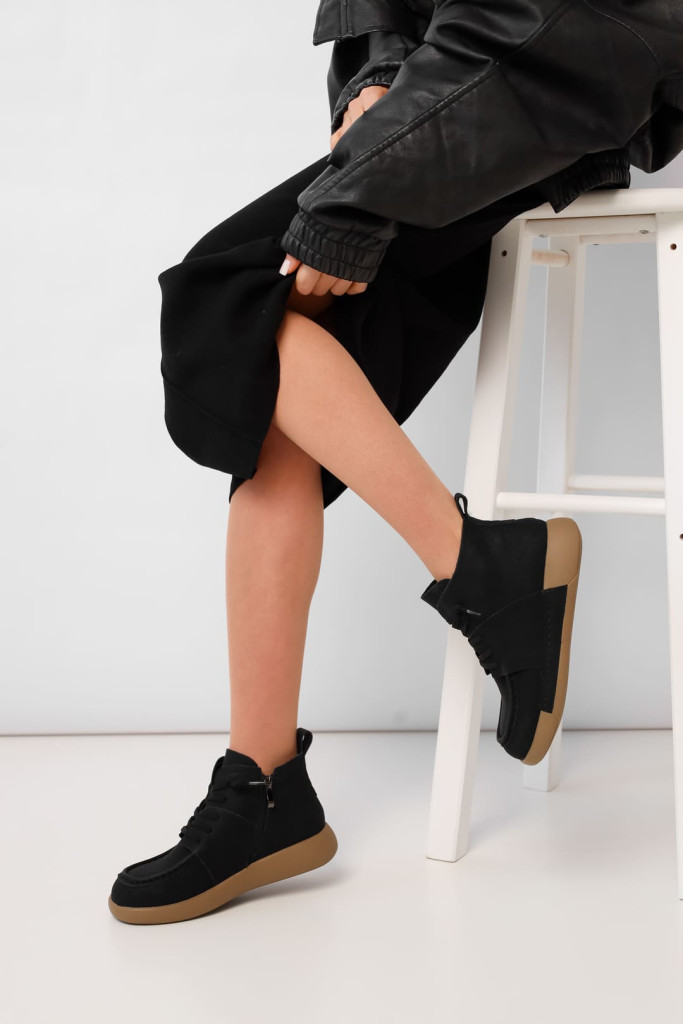 Ботинки 2417 из натурального нубука в черном цвете - это отличный выбор для стильного и удобного дополнения к различным образам. Их универсальный дизайн и цвет позволяют легко комбинировать их с разнообразной одеждой, создавая элегантные и модные образы.