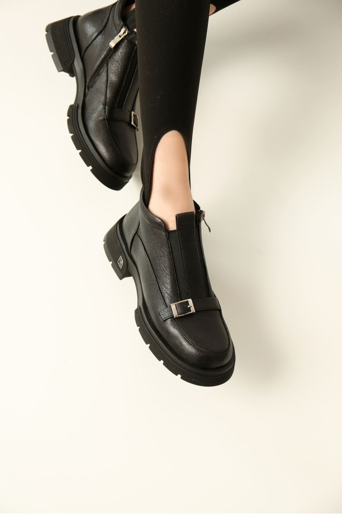 Их отличительная особенность - застежка на молнию, эластичные вставки на подъеме и декор в виде ремешка с металлической пряжкой. Материалы верха, внутренней отделки и подошвы также гарантируют комфорт и долговечность.