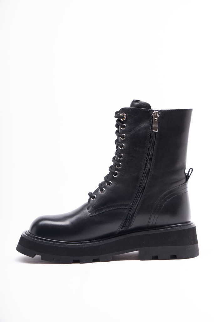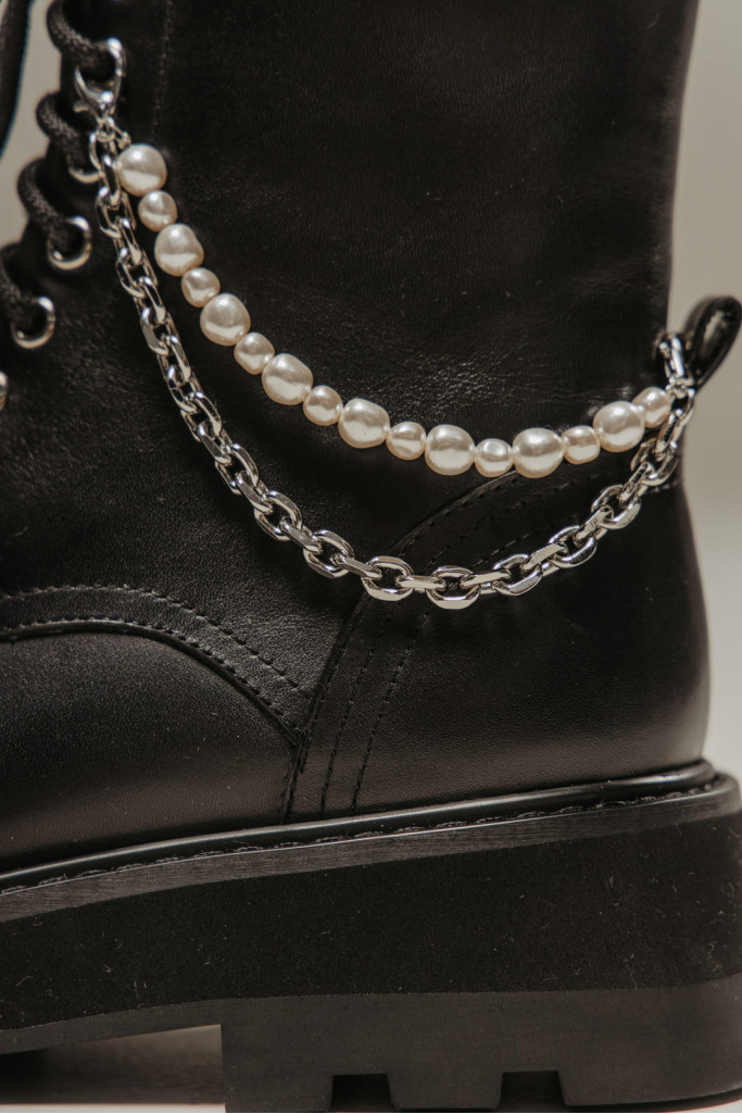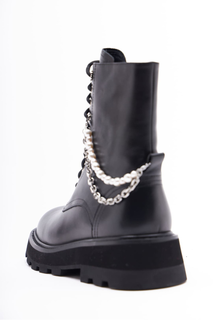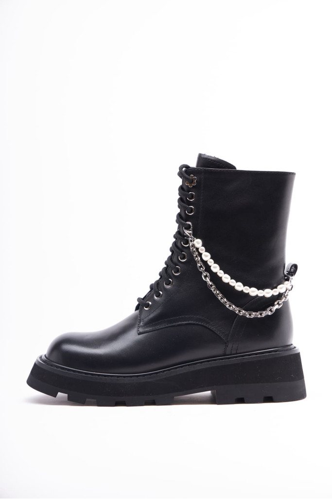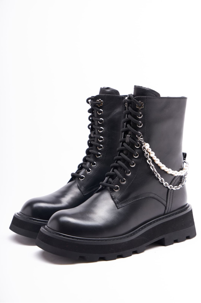 Ботинки 1014 изготовлены из качественной натуральной кожи в чёрном цвете. Они станут прекрасным выбором в Вашей коллекции удобной и практичной демисезонной обуви. Дизайн ботинок продуман до мельчайших деталей: закругленный мыс; застежка на молнию с внутренней стороны; шнуровка на подъёме; устойчивый каблук. Декорирована данная модель подвесками - цепью и бусинами с боковой стороны. Все элементы отлично подобраны и подходят друг к другу. Ботинки 1014 будут отличной покупкой для Вас либо подарком для близкого человека.
