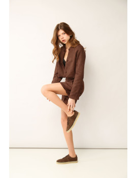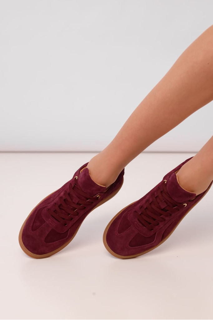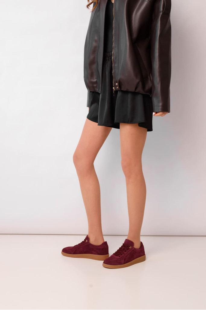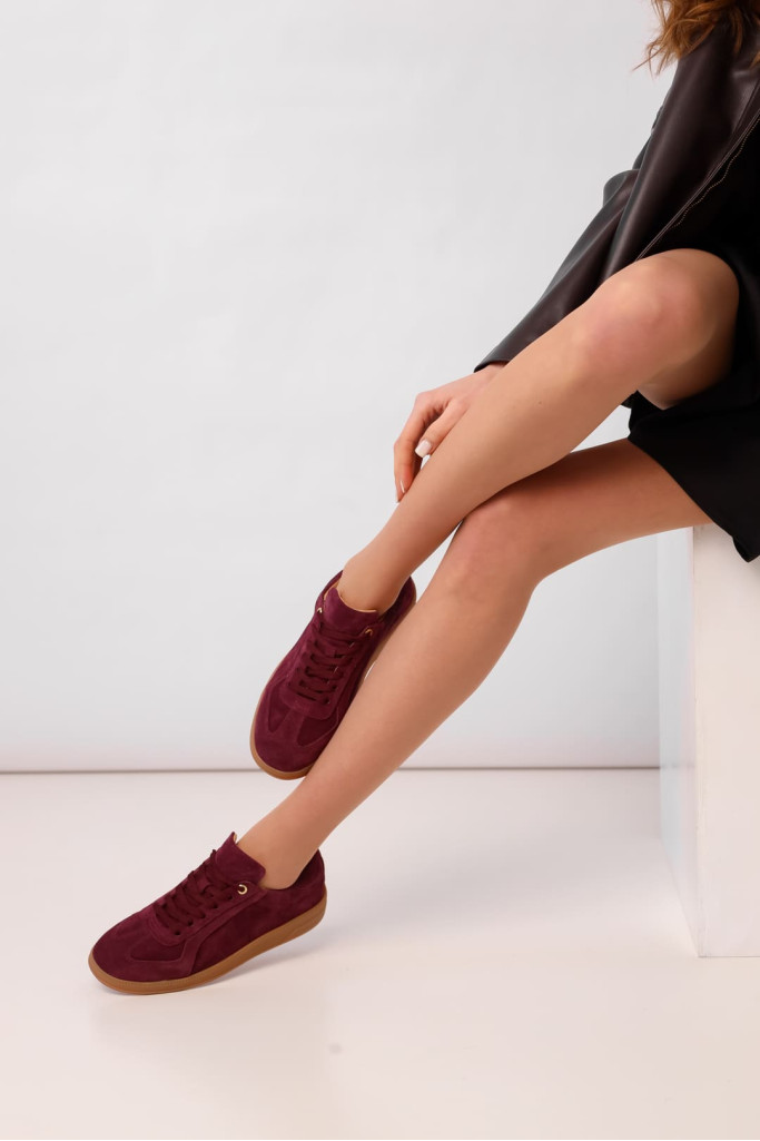 Кеды 2433Q представляют собой стильную и удобную пару обуви, которая идеально подойдет для повседневного использования. Изготовленные из высококачественной натуральной замши бордового цвета. Подошва высотой 2,5 см придает кедам современный вид, что делает их идеальными для длительных прогулок.