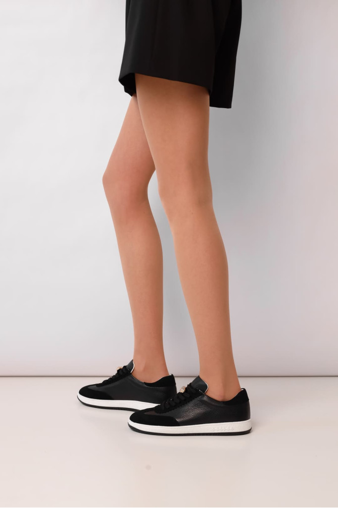 Кеды 2441 — это не просто обувь, а настоящий модный акцент вашего гардероба. Их универсальный черный цвет и комбинация натуральной кожи и натуральной замши делают эту пару уникальной и долговечной. Подошва высотой 2,5 см обеспечивает не только стильный внешний вид, но и комфорт при длительных прогулках, что особенно важно в повседневной жизни.