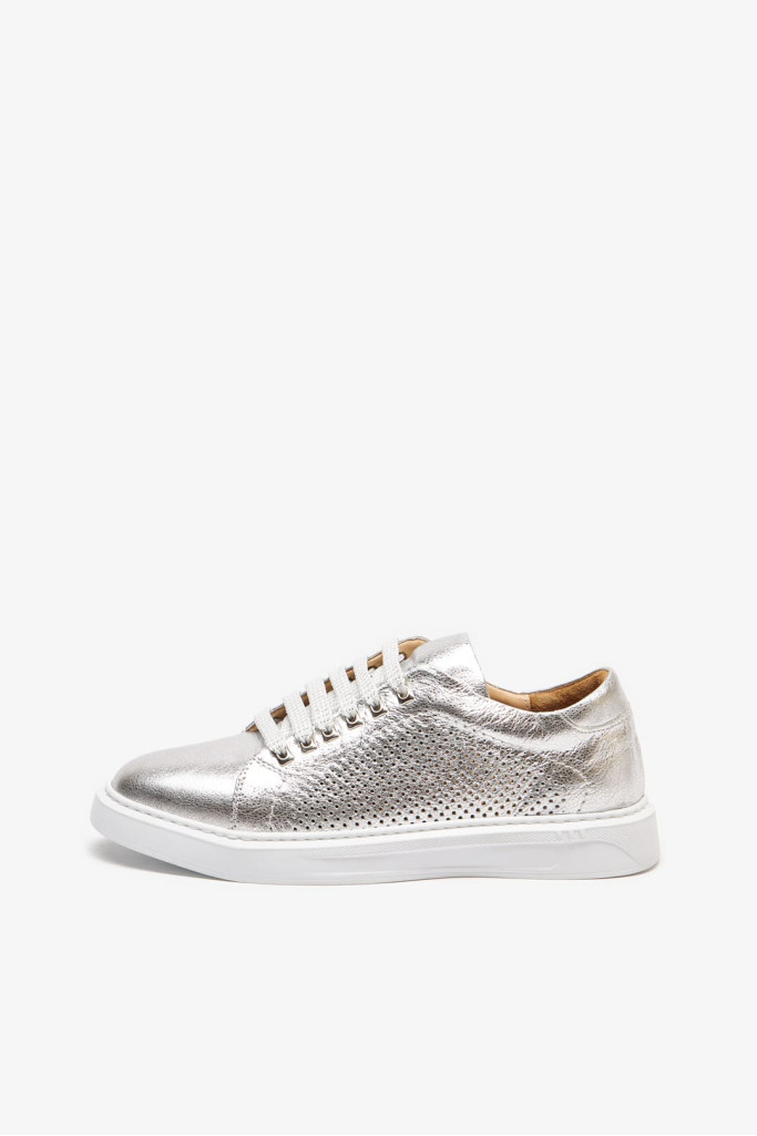 Кеды 1871 - это отличный выбор для тех, кто ценит стиль, комфорт и качество. Их изящный дизайн, сочетающий в себе практичность и элегантность, делает их универсальными для различных повседневных образов. Натуральная кожа в серебряном цвете придает этой паре обуви стильный и модный вид, который легко сочетается с различными нарядами.
