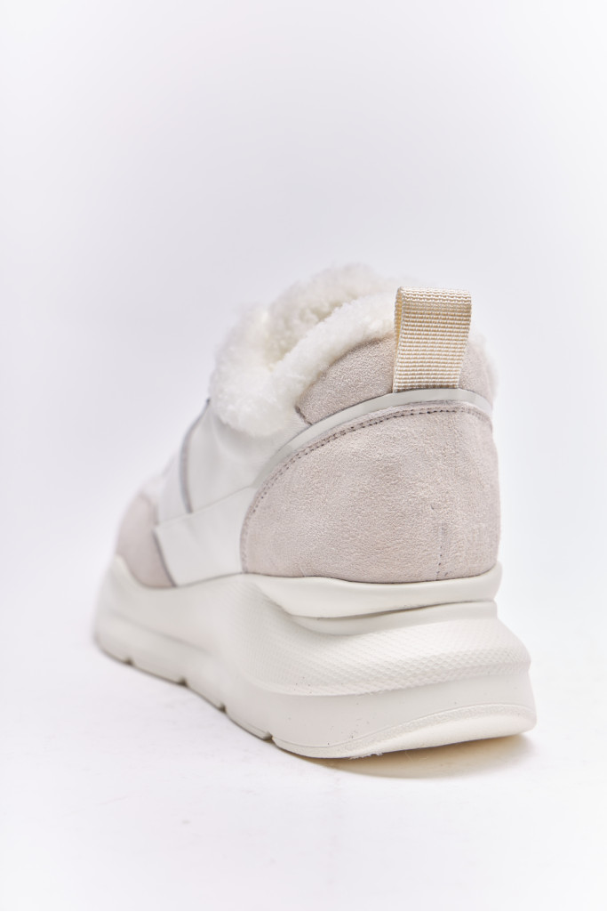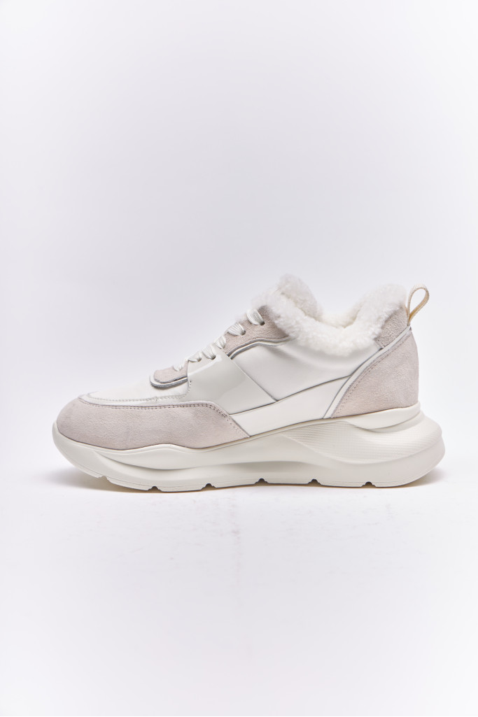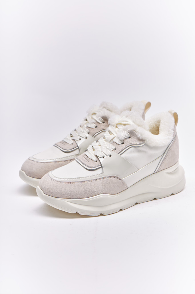 Кроссовки DEENOOR 801M-37-B9/Q3 белого цвета изготовлены из комбинации качественной натуральной кожи и  вставки из натуральной лаковой кожи, меховая отделка и удобная шнуровки. Это обеспечивает комфорт и поддержку для ног во время активных занятий или прогулок.