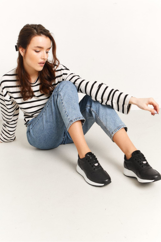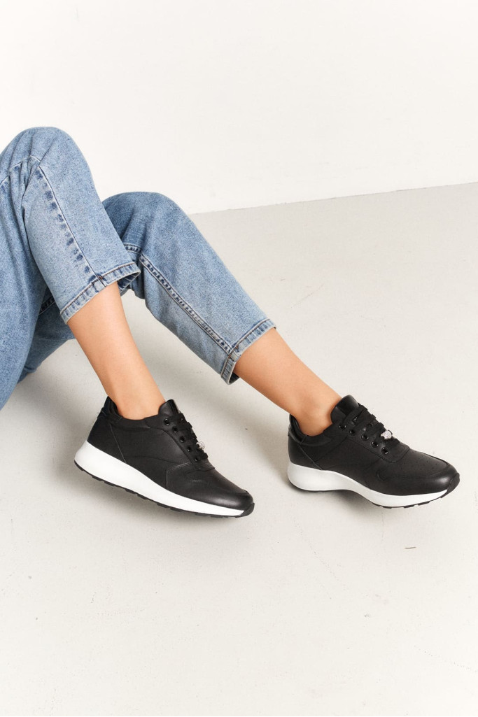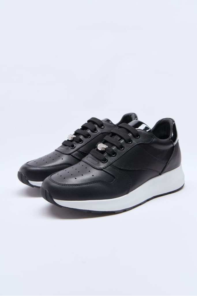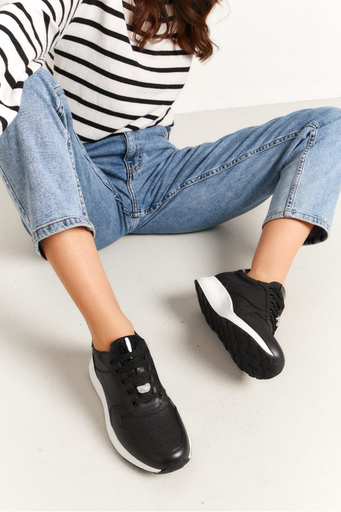 Кроссовки 1254 из натуральной кожи - это отличный выбор для стильных и комфортных повседневных образов. Их уникальный дизайн и сочетание таких элементов, как массивная подошва и шнуровка с декором со стразами на подъёме придают им особый шарм.