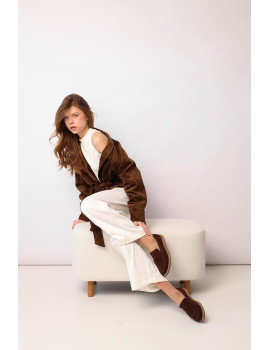Лоферы 2465 являются идеальным выбором для стильных женщин, стремящихся к элегантности и комфорту. Изготовленные из высококачественной натуральной замши, они обещают не только долговечность, но и приятные ощущения при носке. Шоколадный цвет делает их уникальными, позволяя легко сочетать с разнообразными нарядами — от классических офисных комплектов до более расслабленных образов для вечерних встреч.