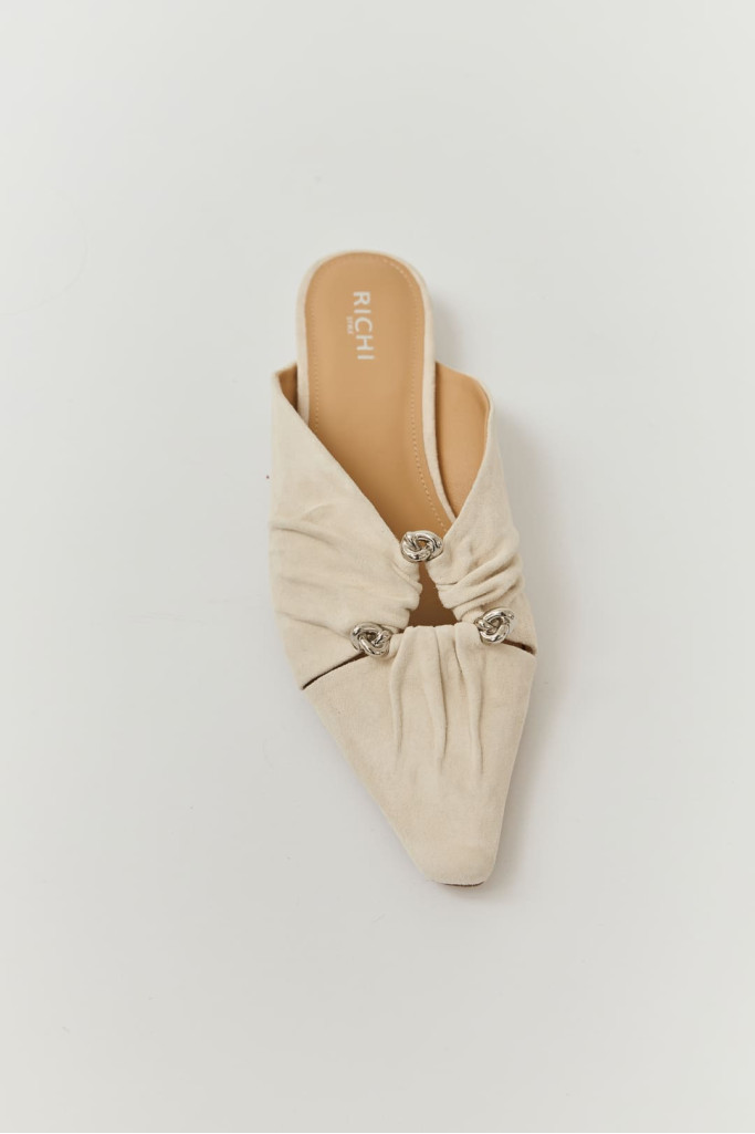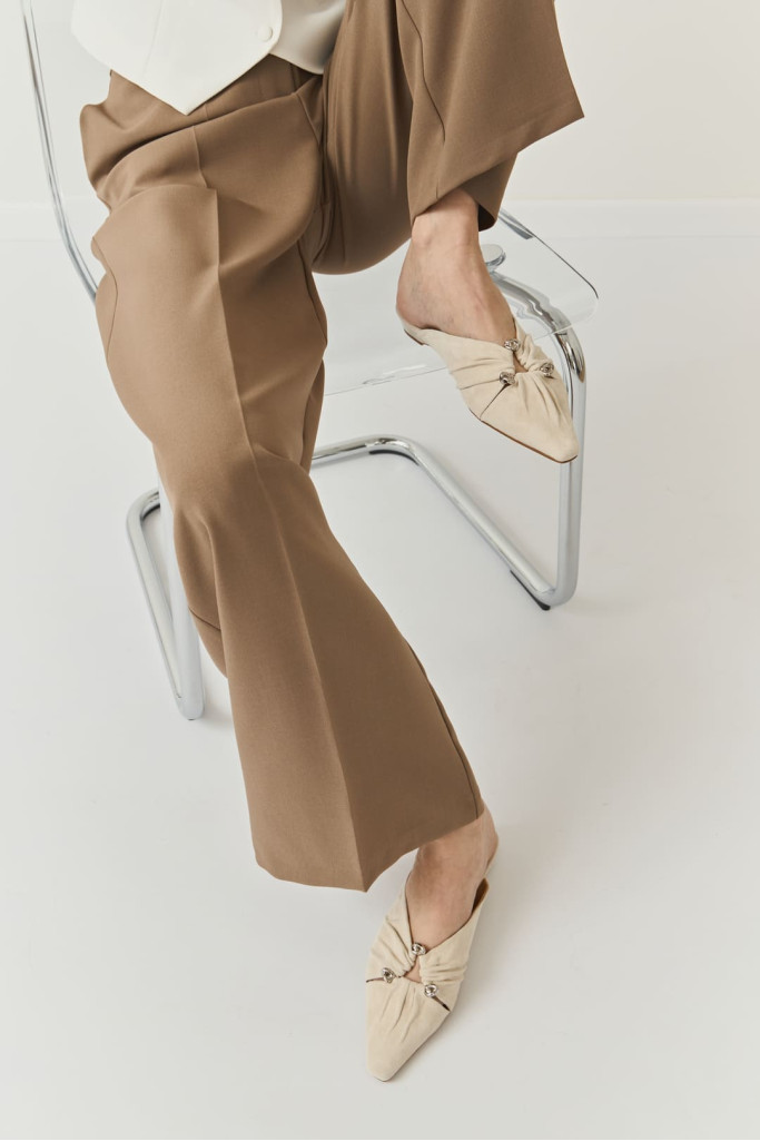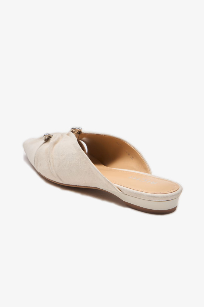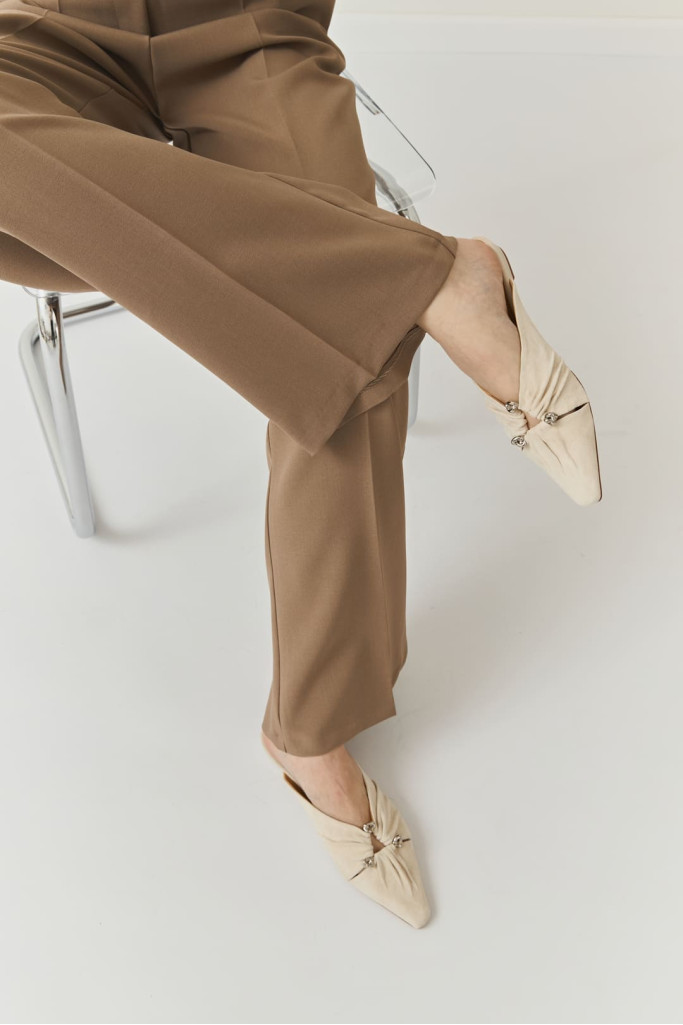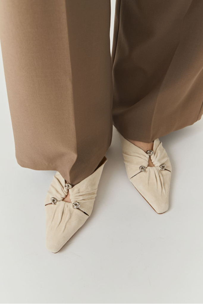 Мюли 2266 выглядят очень стильно и элегантно. Бежевый цвет делает их универсальными и легко сочетаемыми с различными нарядами. Качественная натуральная замша обеспечивает комфорт и долговечность. Они подойдут как для делового офисного образа, так и для более повседневных ситуаций, например, для похода в кино или на свидание.