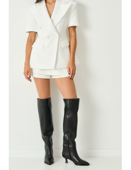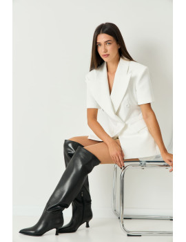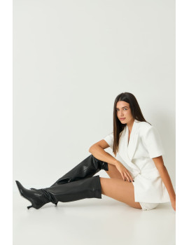 Ботфорты 20781 выполнены из качественной натуральной кожи с фактурой под рептилию и представлены в молочном цвете. Натуральная кожа обеспечивает не только привлекательный внешний вид, но и комфорт при носке. Молния с внутренней стороны облегчает процесс обувания, а заостренный мыс и каблук оригинальной формы придает сапогам женственный вид.